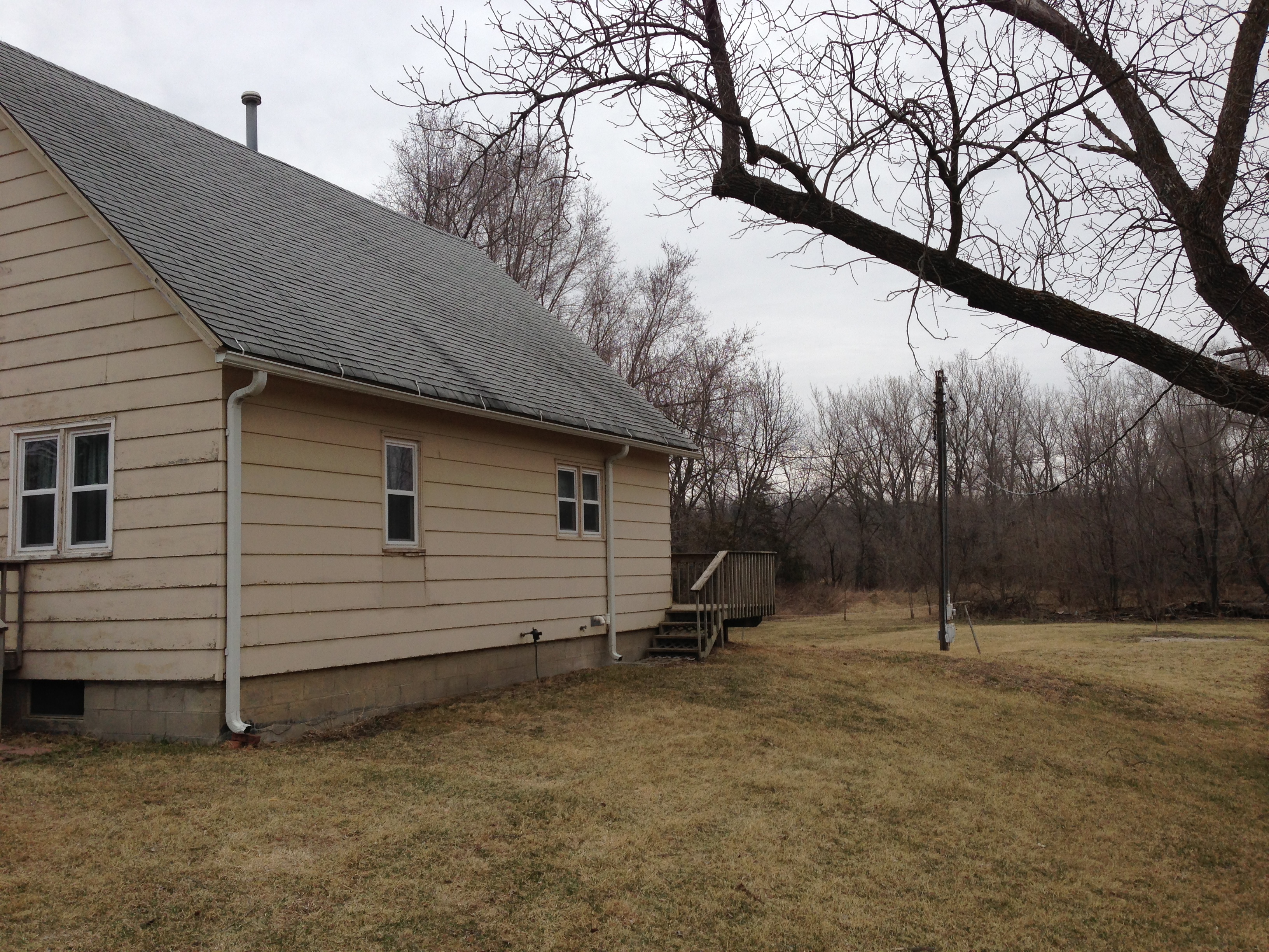 The rear facade is a good visual of the need for new siding—a project near the top of the to-do list.