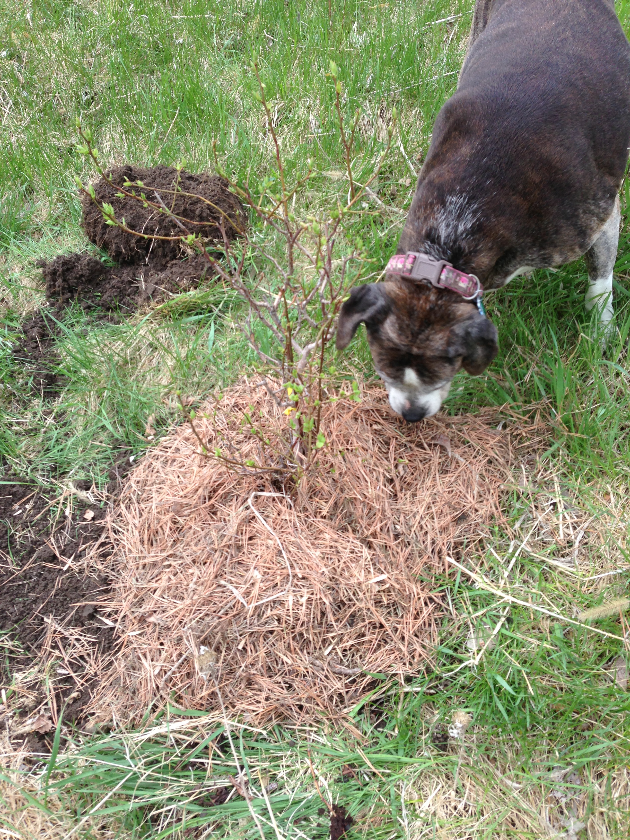 Ben found three-year-old blueberry bushes on Craig’s List. We situated them toward the back of the open two acres, just outside the wooded area. We also transplanted some raspberries from the spreading-like-crazy plot at our house in town.