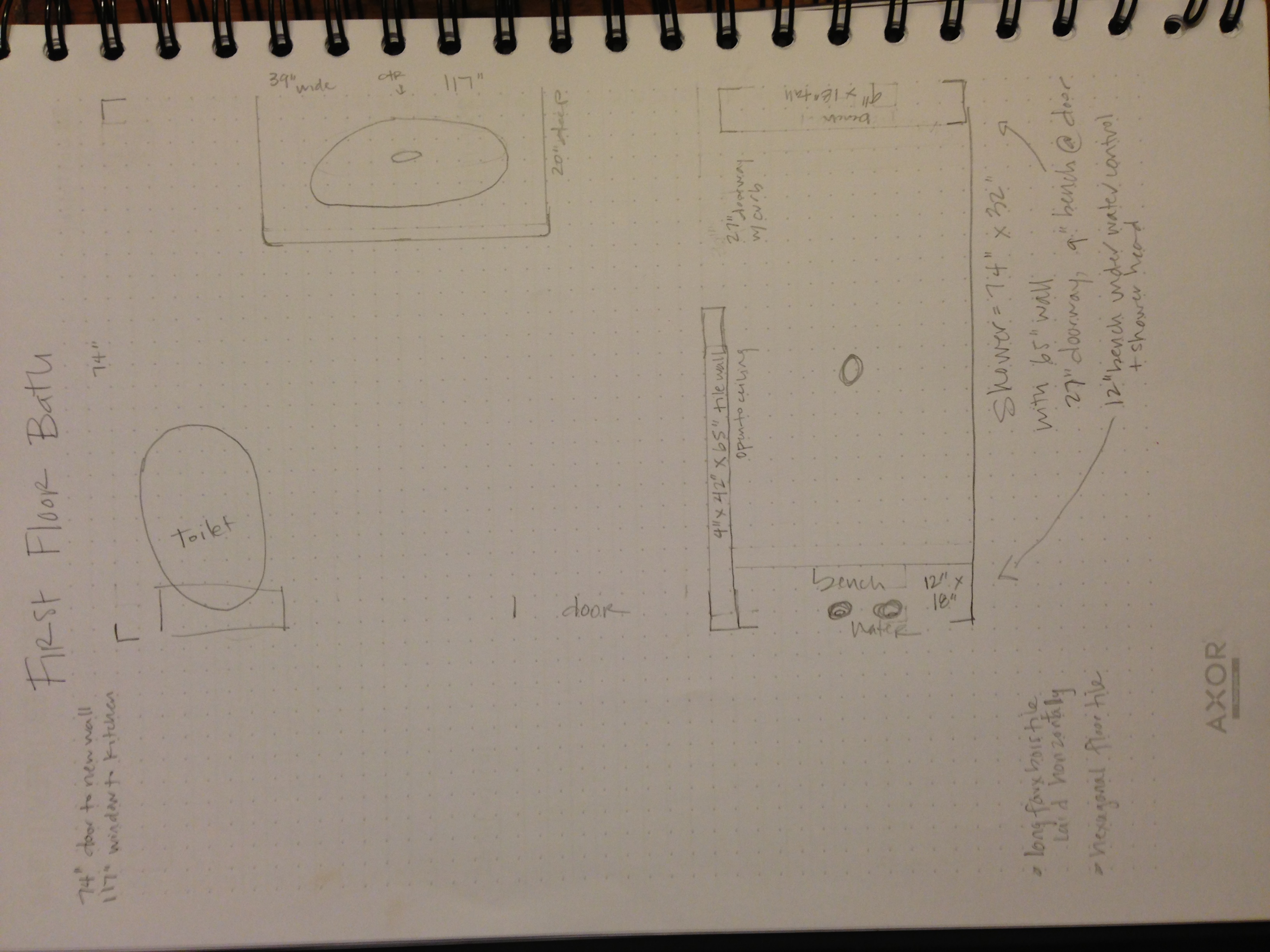 A reminder of the bath we started with—a room so narrow that any one more than 5’6″ would have his or her knees touching the wall when sitting on the toilet.