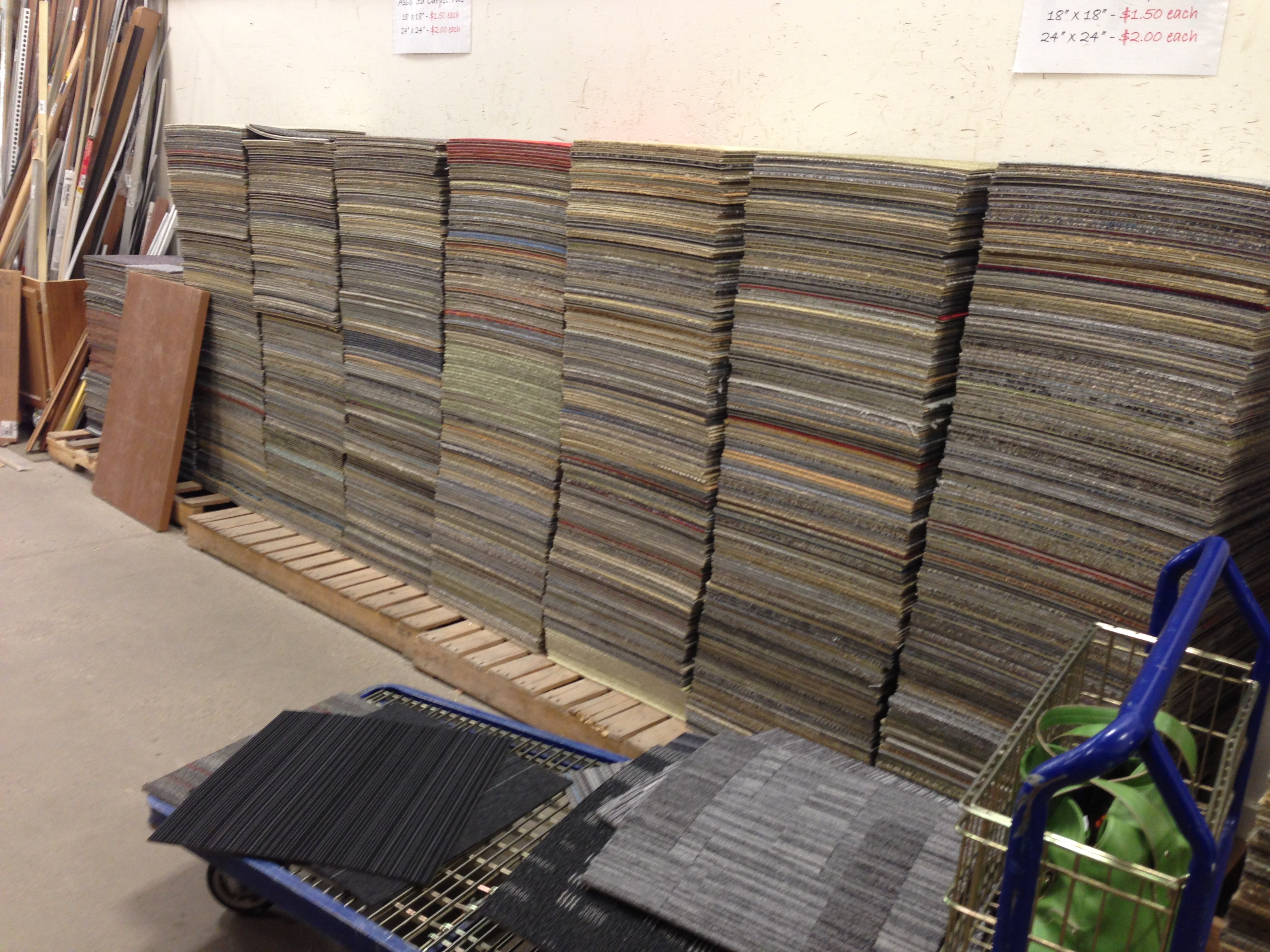 So, I returned to my favorite new retail experience: the ReStore, and their tall-as-me piles of Flor carpet squares.