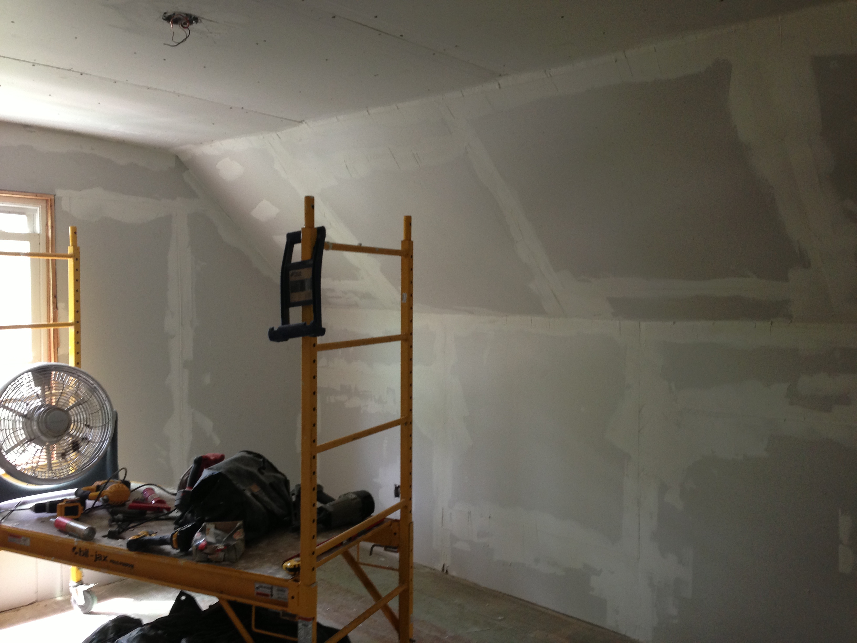 Yes ma’am, we’ve got drywall!! Thanks to Ben and Tyler’s tireless work, the house is suddenly feeling a lot more liveable! I was thrilled to see the entire second floor clad in drywall and a first coat of mud!