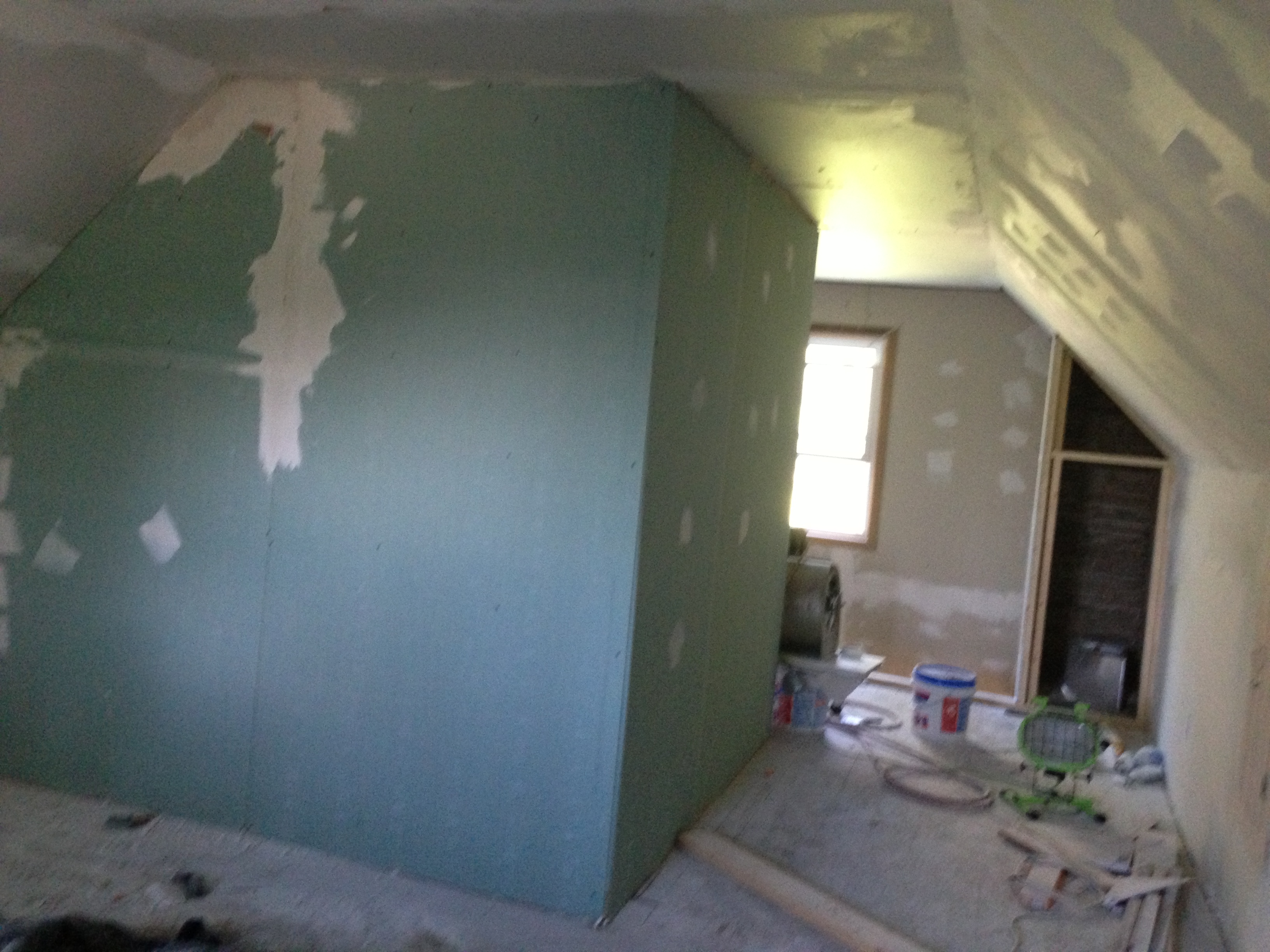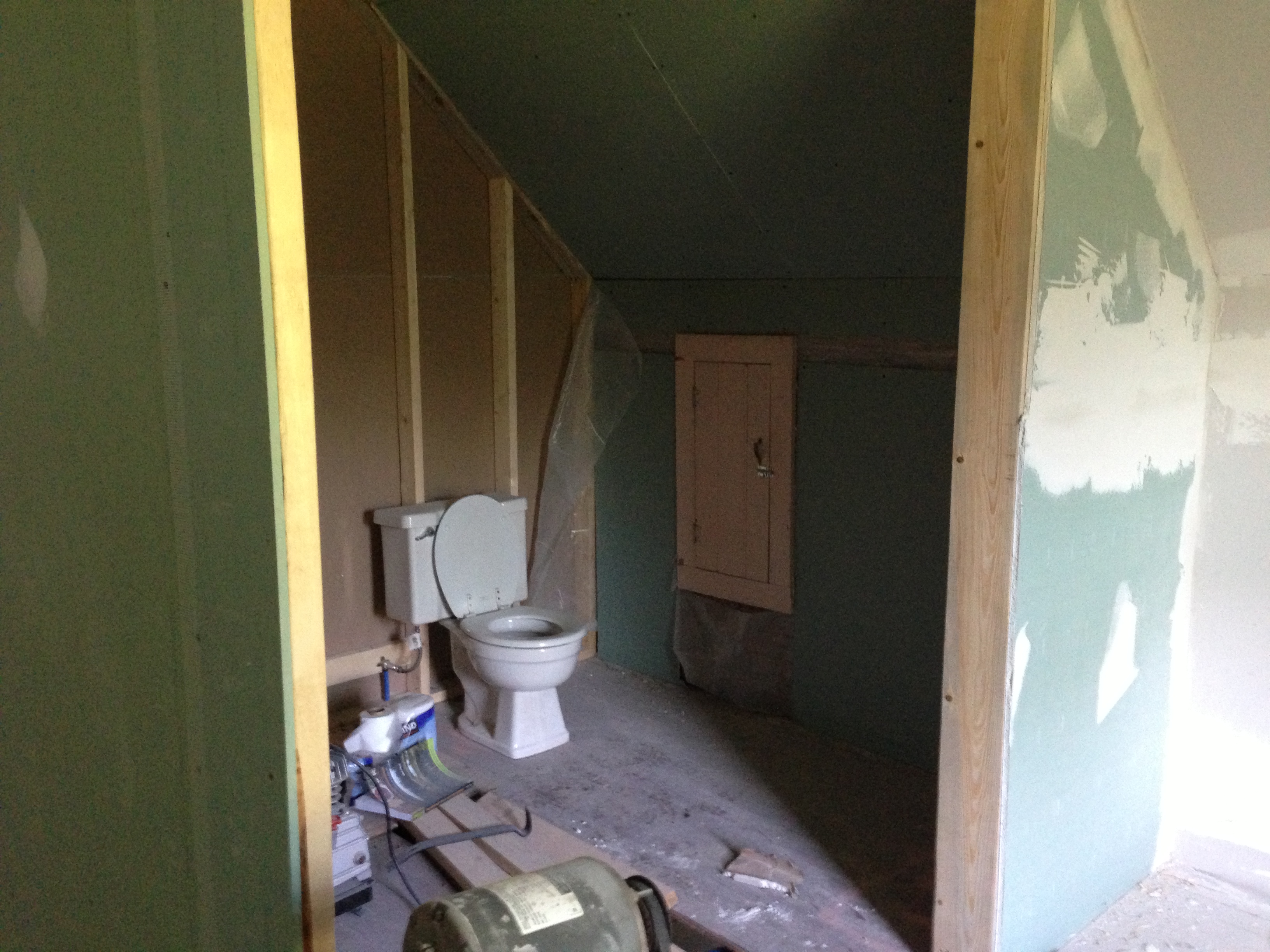 The green walls are the new bathroom on the second floor. It provides our bedroom some privacy from the stairwell.