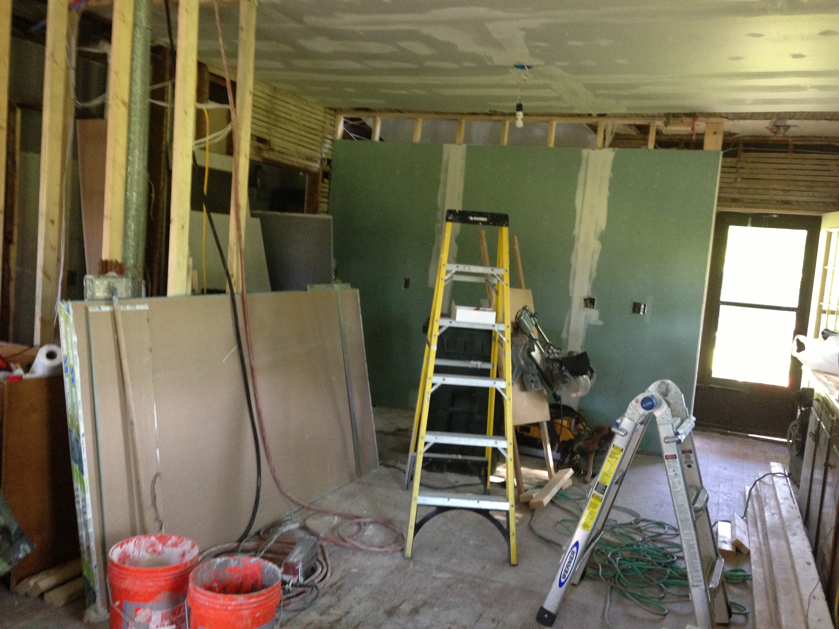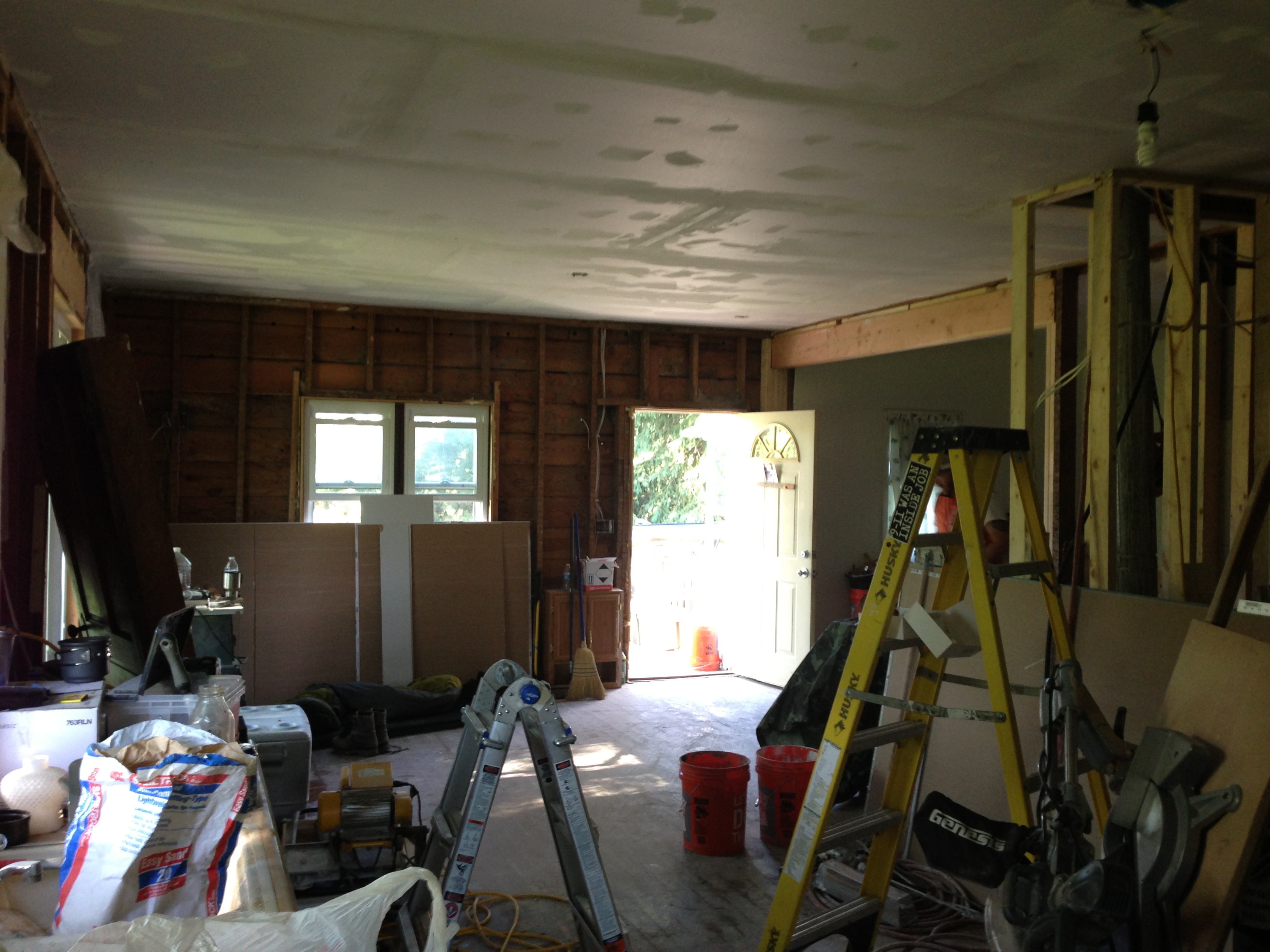 And a few days later, all the ceilings on the first floor have drywall and mud, too. These two guys are amazing!!