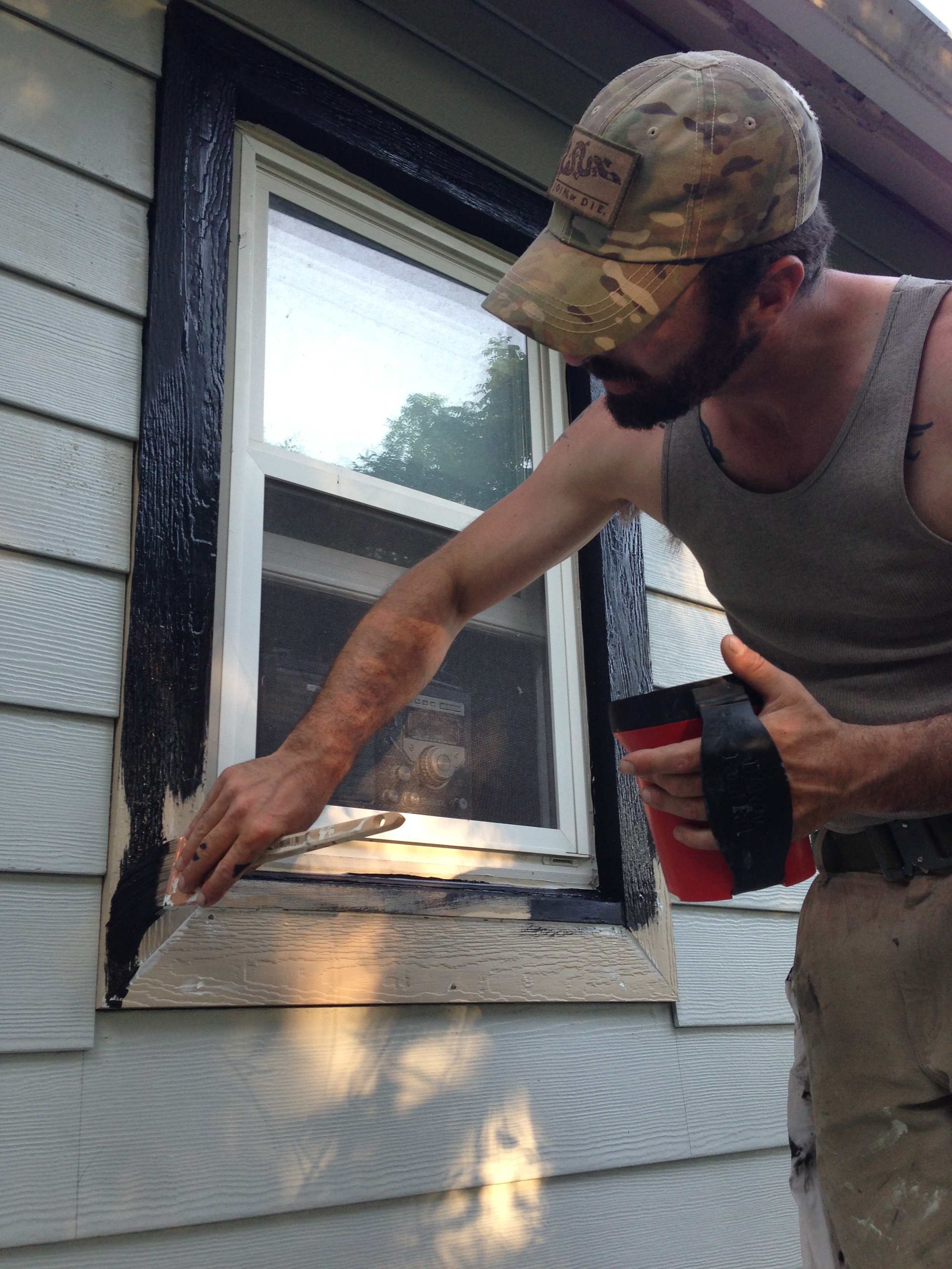 Doesn’t that black trim paint looks amazing with the gray siding? I love love love it!! I can’t wait to see it with the darker shake siding on the ends of the house where the walls are two story!