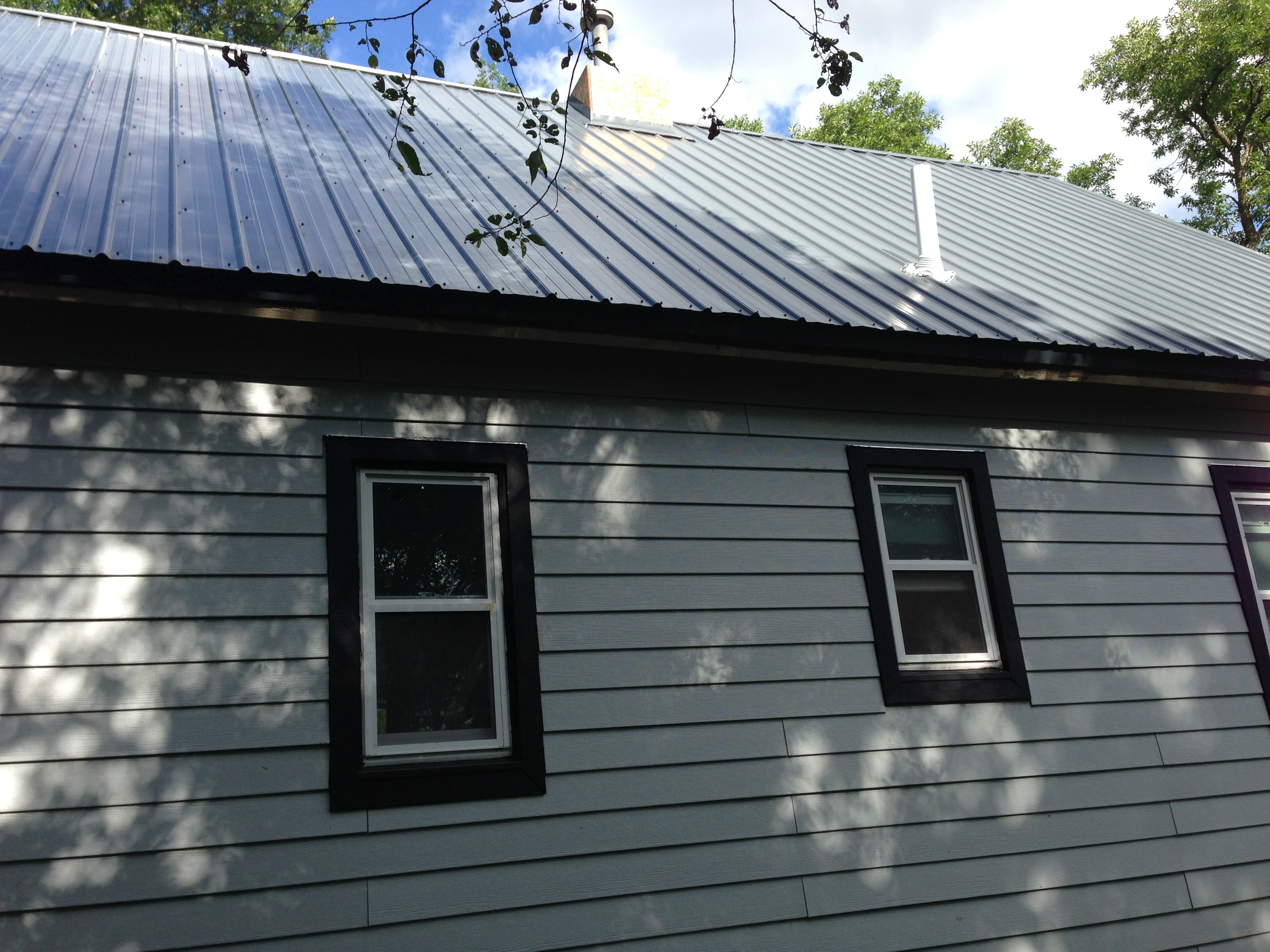 Here it is, folks! Our latest pride and joy!! A new steel roof, in dark gray. Isn’t it stunning with the new siding?