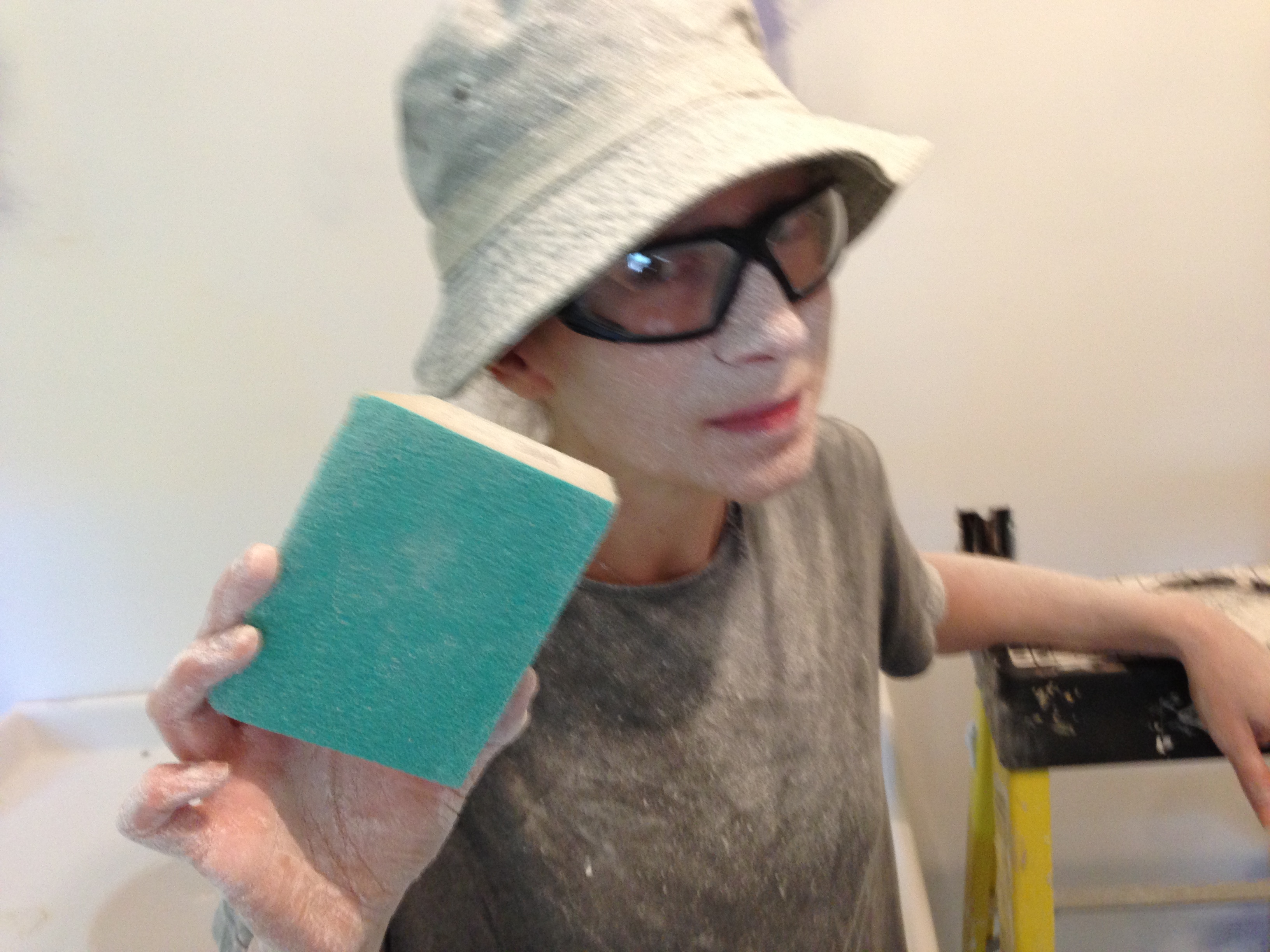 Next, I sanded and wiped down the bathroom. Now, it is ready for primer.