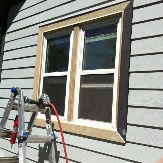 While I was working inside, Ben was busy in his new workshop cutting trim for the windows on the front of the house and trimming those out to perfection.