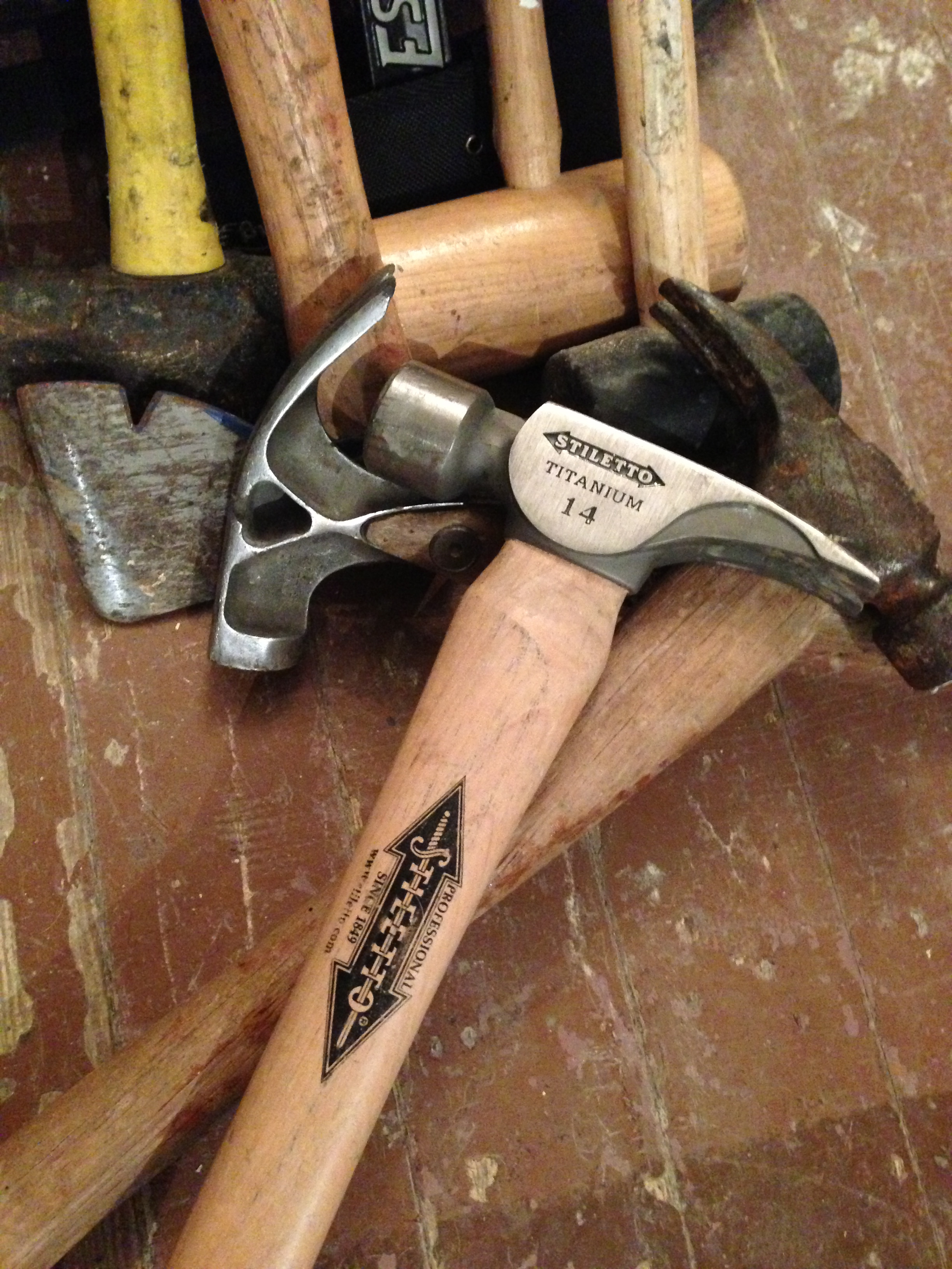 Now its been a while since I swung this big hammer for a living. It is a lot heavier than I remembered. With a gutted house in front of me, maybe its just that I’m getting old, but my sore elbow and shoulder told me it was time for an upgrade. A lot of folks would never justify the expense of a titanium hammer, but “Brothers and sisters, I’ve seen the light!”