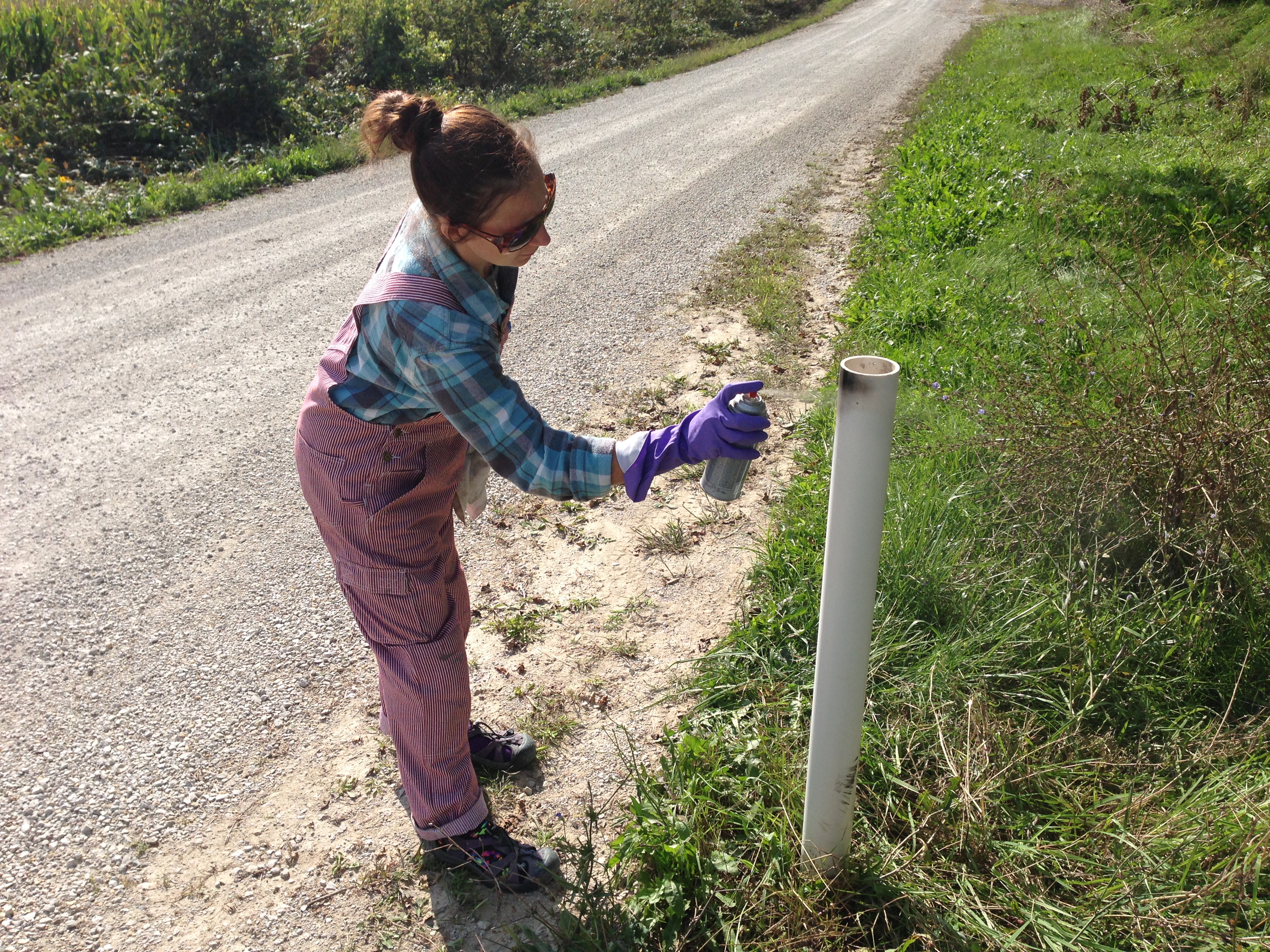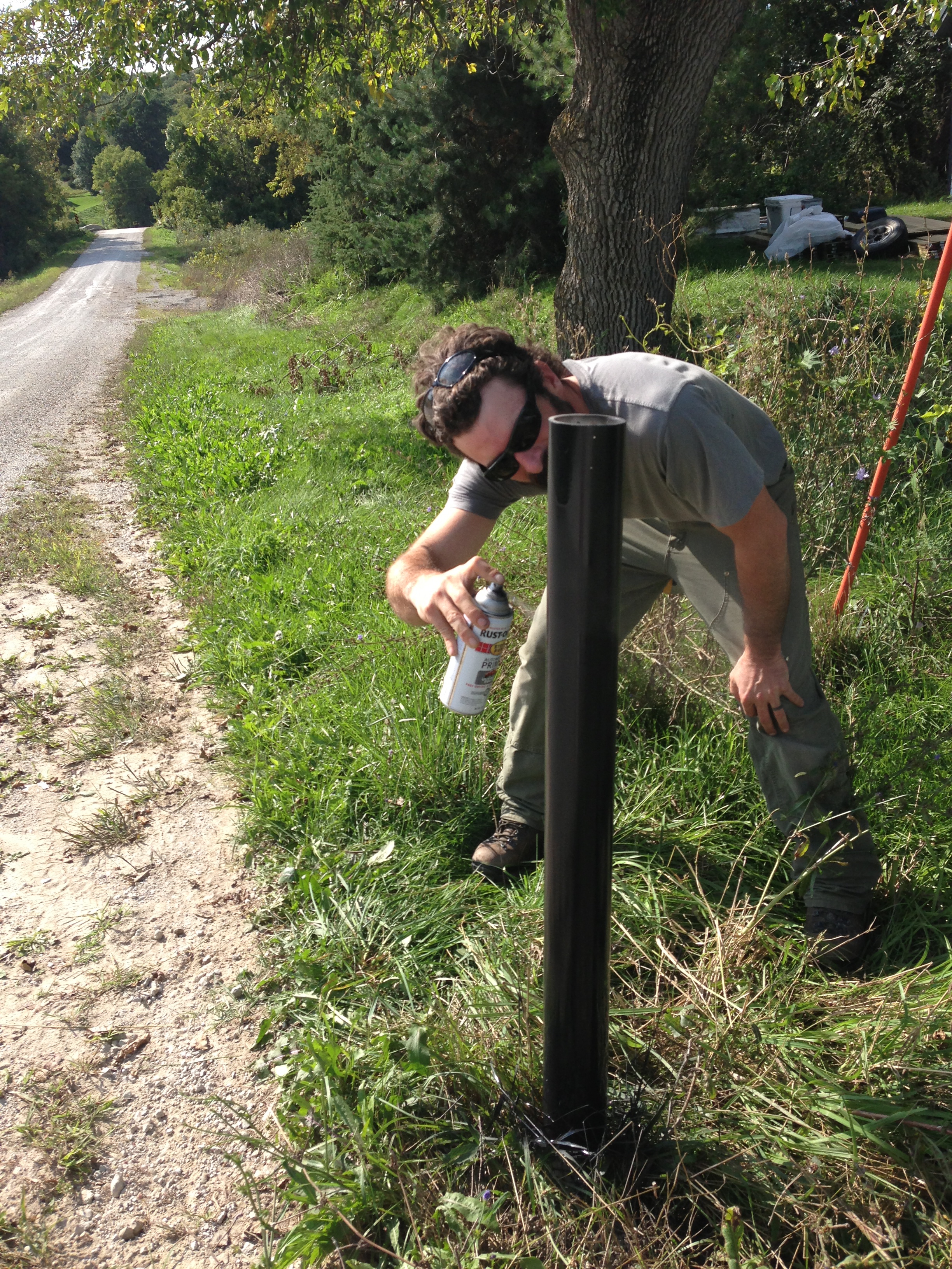 I also found a half-full can of black spray paint and attacked the pvc post. And Ben helped.