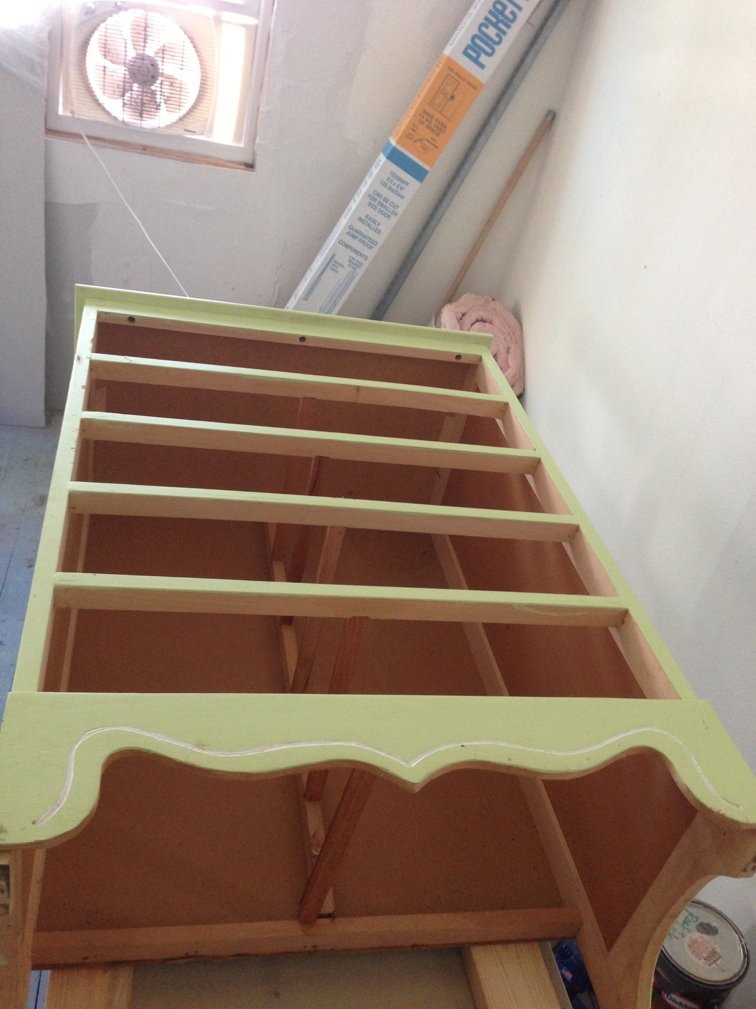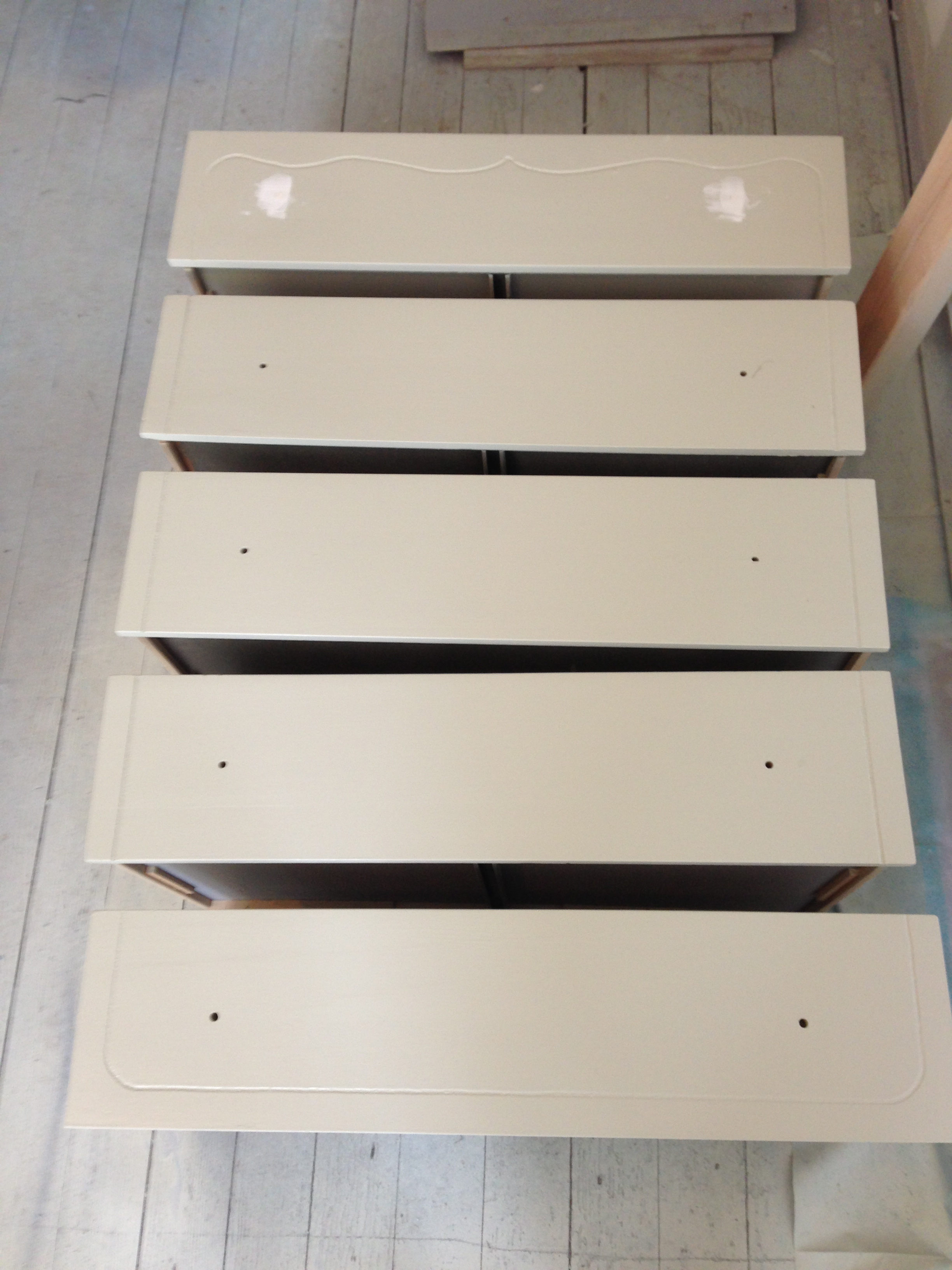 After cleaning and sanding the piece, I took out all the drawers and removed the old hardware.