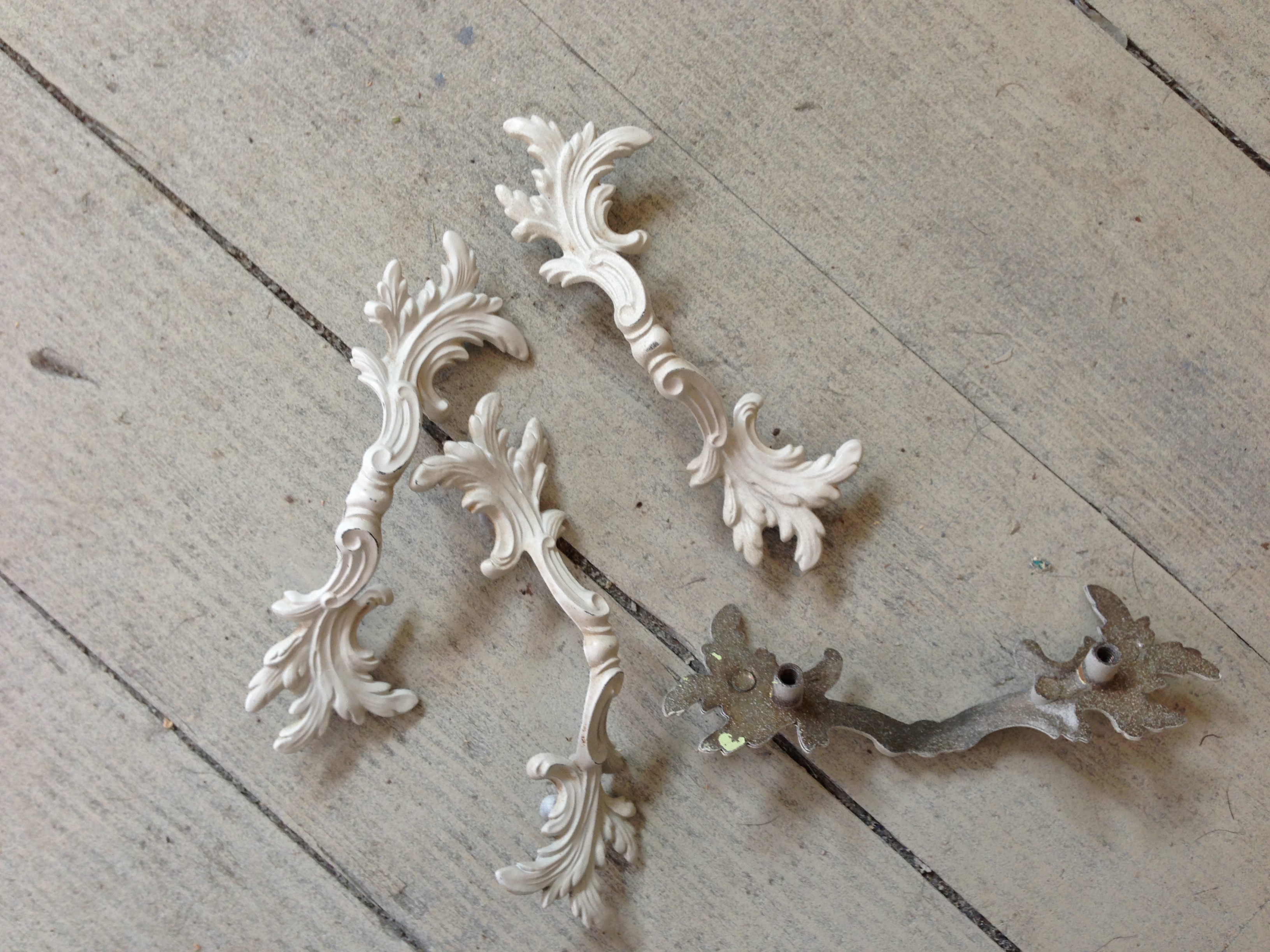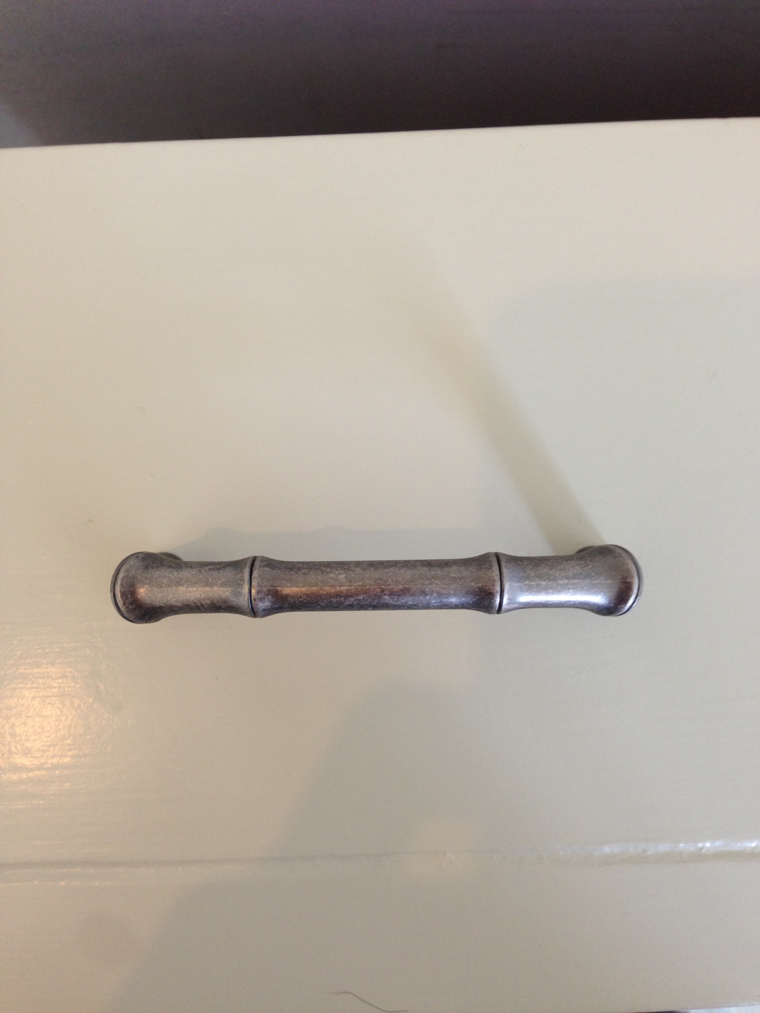 What I didn’t realize before I painted was that I only bought eight of these fabulous bamboo-look drawer pulls when I found them at the Habitat ReStore. Months ago. Sigh. No chance I’d find them there now.