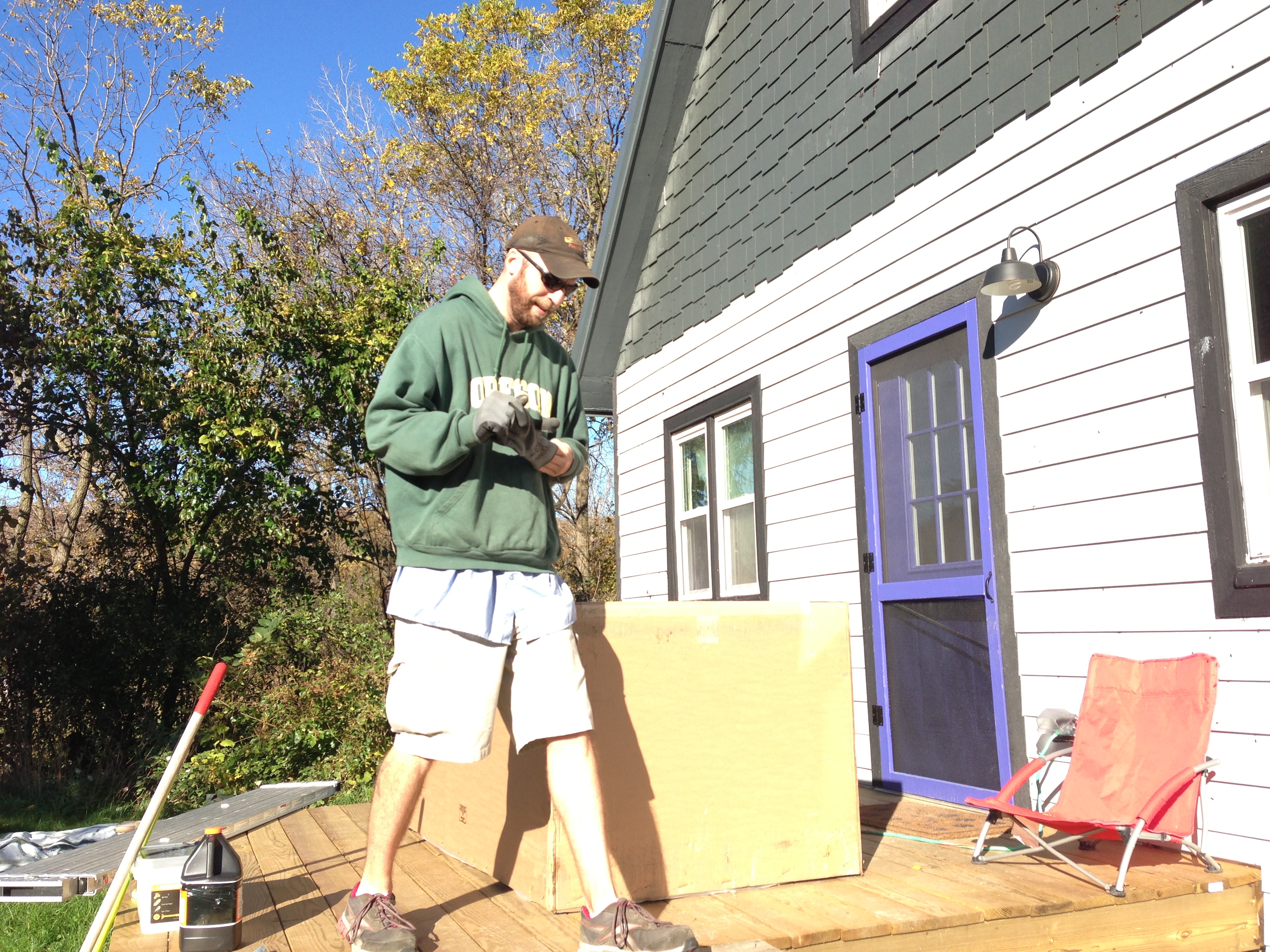For the last several months, as you know, we’ve been in standing mode only in our living room. A few weeks ago, when the TV was hooked up, we moved our two camp chairs from the back yard into the living room so we could at least sit down to eat dinner in front of the tube, in the construction zone. Nice, huh?