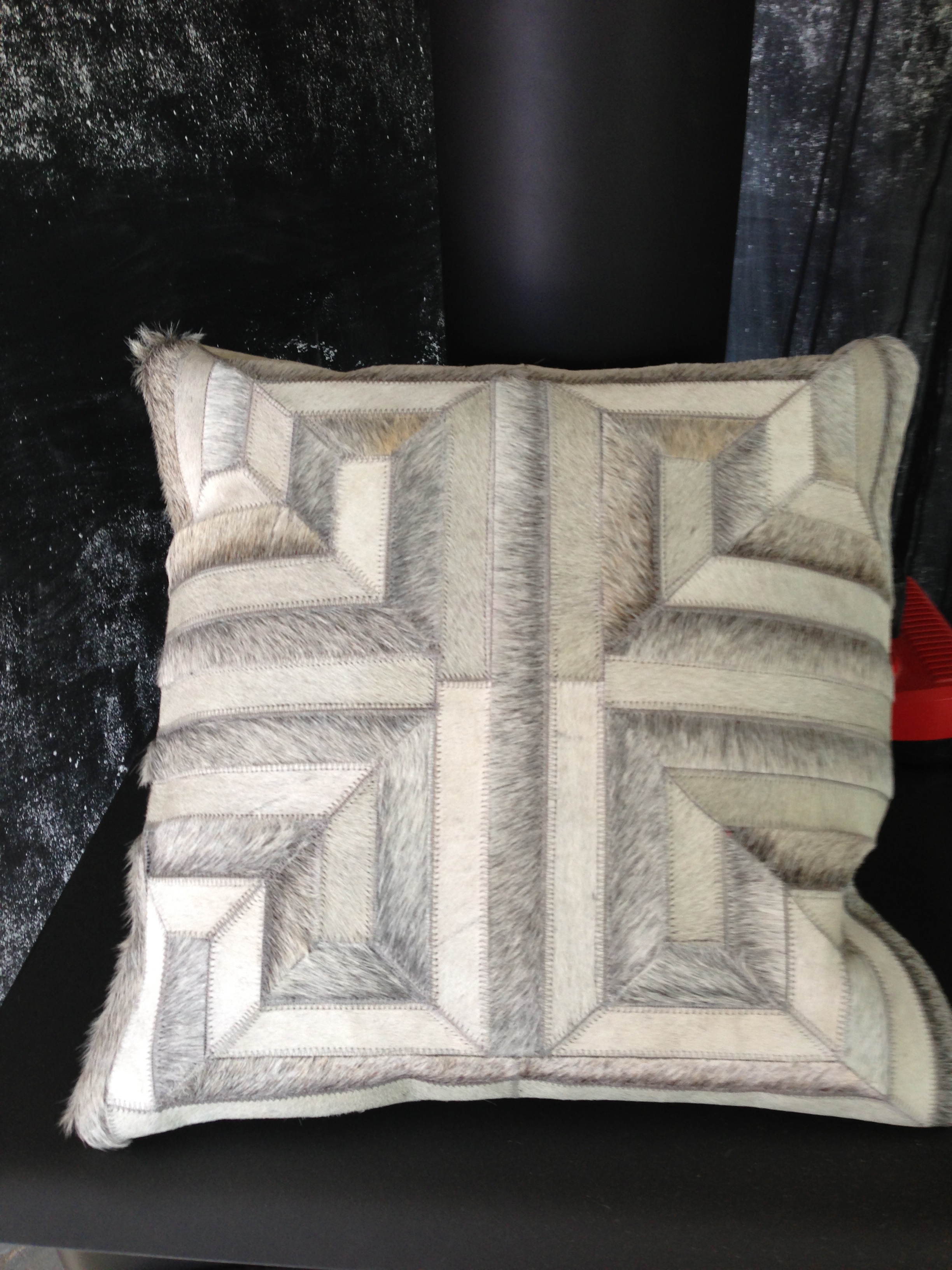In true home design editor fashion, I, of course, had a few accessories waiting for Tate’s arrival. This gorgeous Greek key, hair-on-hide pillow is one we found recently on TouchOfModern.com, a flash-sale site.