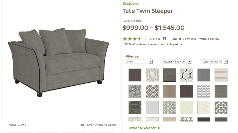 So I finally ordered Tate in gray microsuede—a heavy-duty fabric that will hold up to dogs and dirt and a color that is neutral while not ho-hum and is a great match to my West Elm drapery panels that will soon be hanging in the living room!