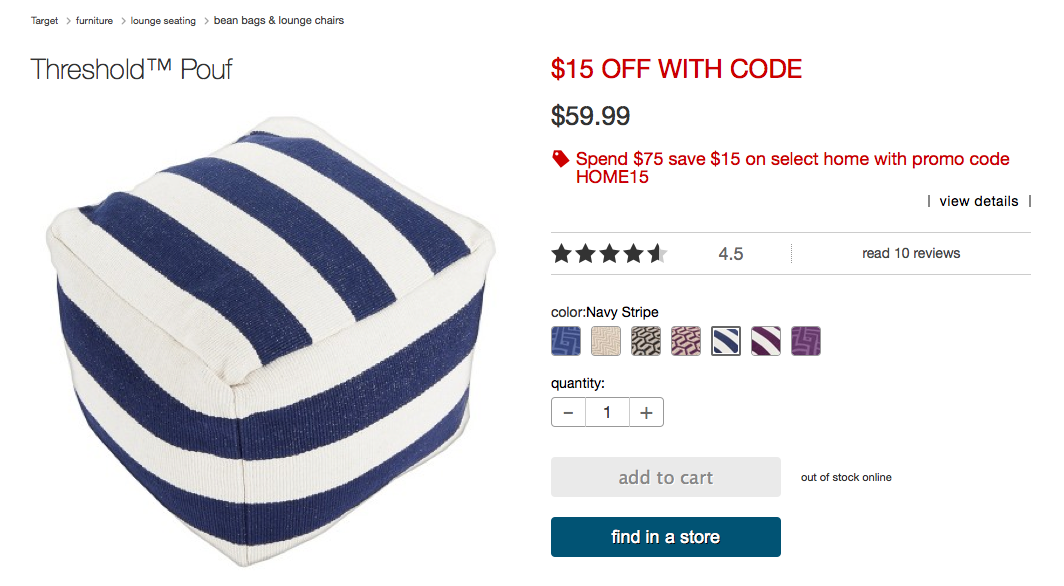 And a couple of these super-cute poufs from Target’s Threshold line that I found in-store and on major sale a couple of months ago.