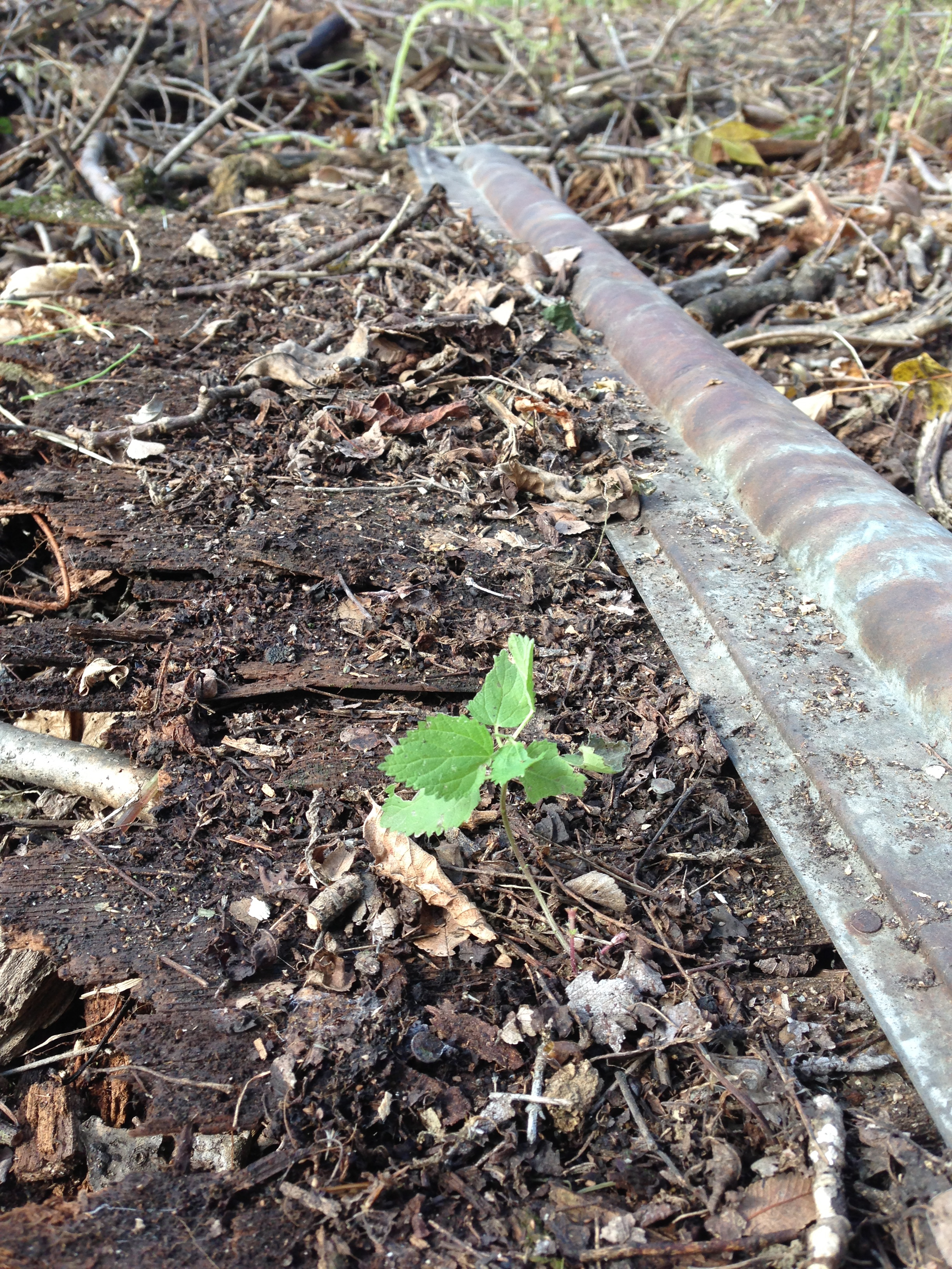 Next, he found this ridge cap in the pile ‘o barn. He cut it using tin snips to cover the seams on the edges of the triangle.