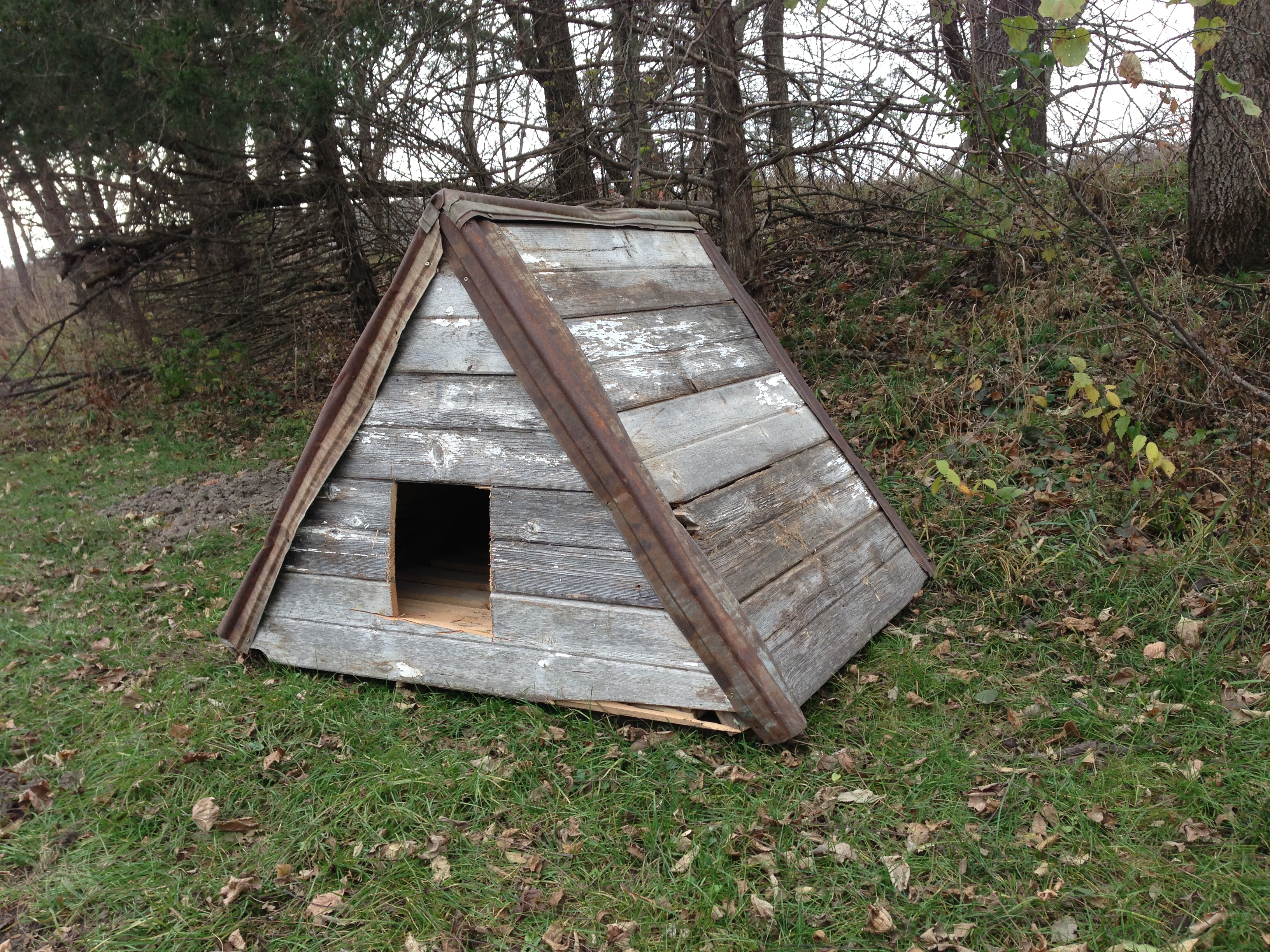 Ben recently took a break from splitting and stacking firewood to get creative with barnwood. The result: An adorable A-frame animal house that will give Jake (or any other barnyard critter) a place to hide during bad weather (Jake’s scared of thunder).