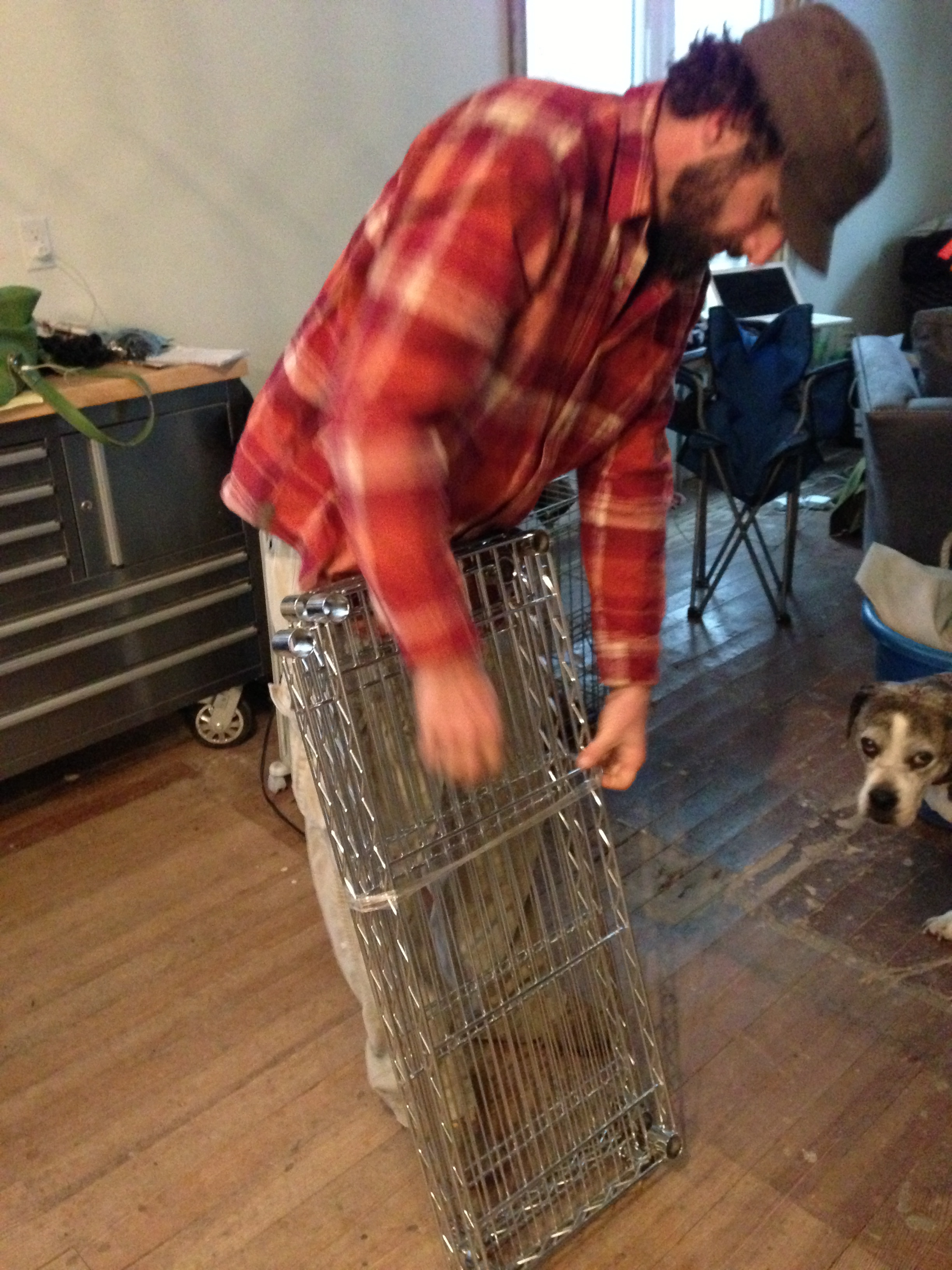 Personally, I think this is a brilliant idea! Of course, it took all day (I had to drive to town for S-hooks and in between this project I was baking bread, Ben was splitting wood, and I was finishing a work assignment), but here we are making it happen: