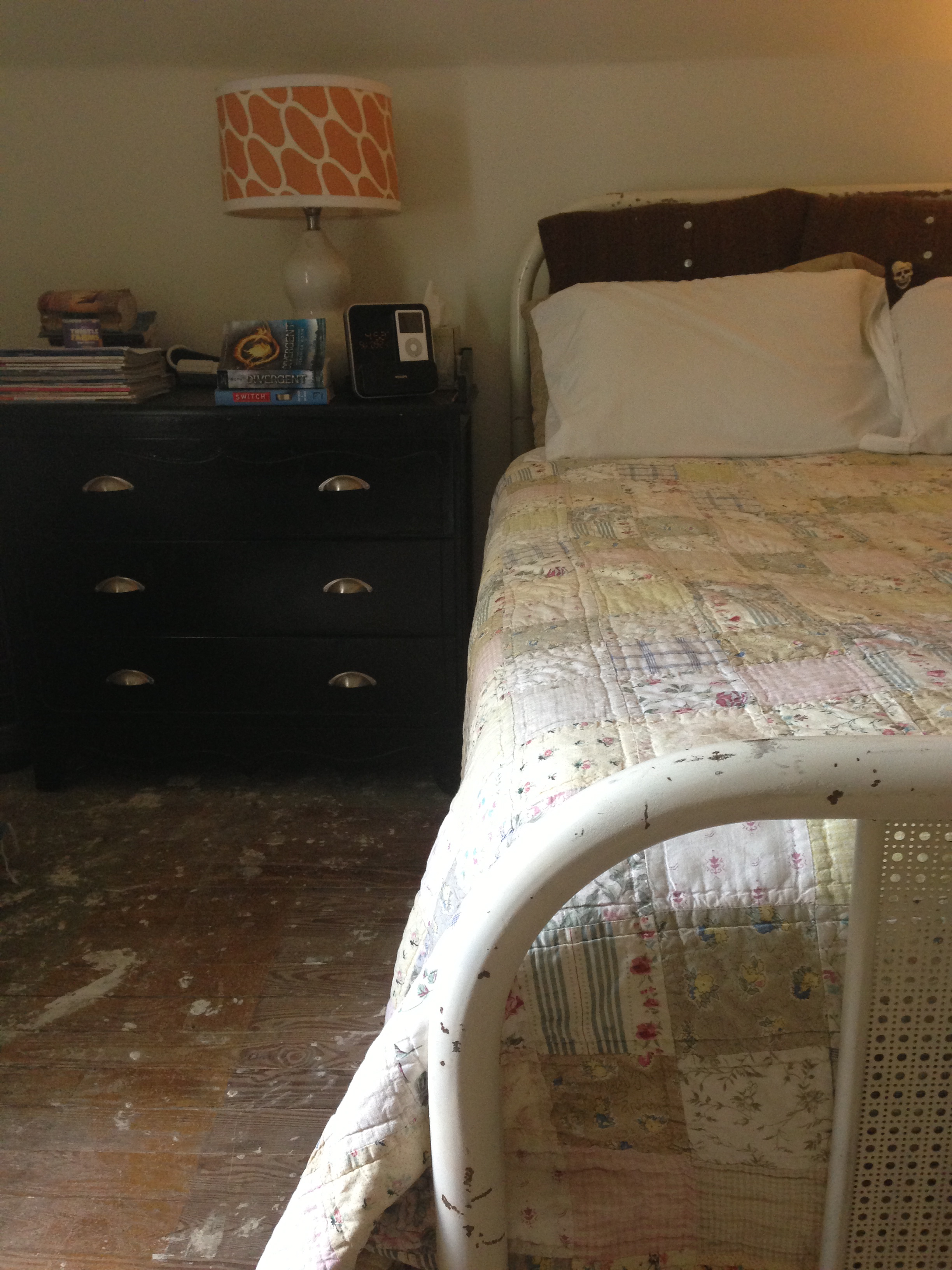 The upstairs is two rooms, this paneled one at the top of the stairs and a second room through the doorway. We made this space into our master suite.