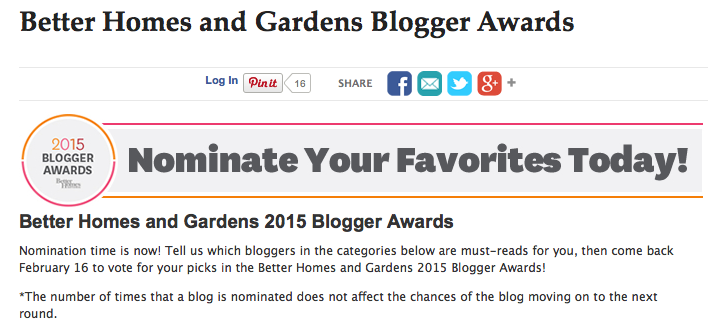 One of our most amazing—and grammatically correct—readers messaged to say that she has nominated CockamamyFarm.com for a Better Homes and Gardens Blogger Award! We are SO honored! If you’d like to get in on the nomination fun, here’s the short, easy form. And don’t worry, we’ll be reminding you to vote on February 16!