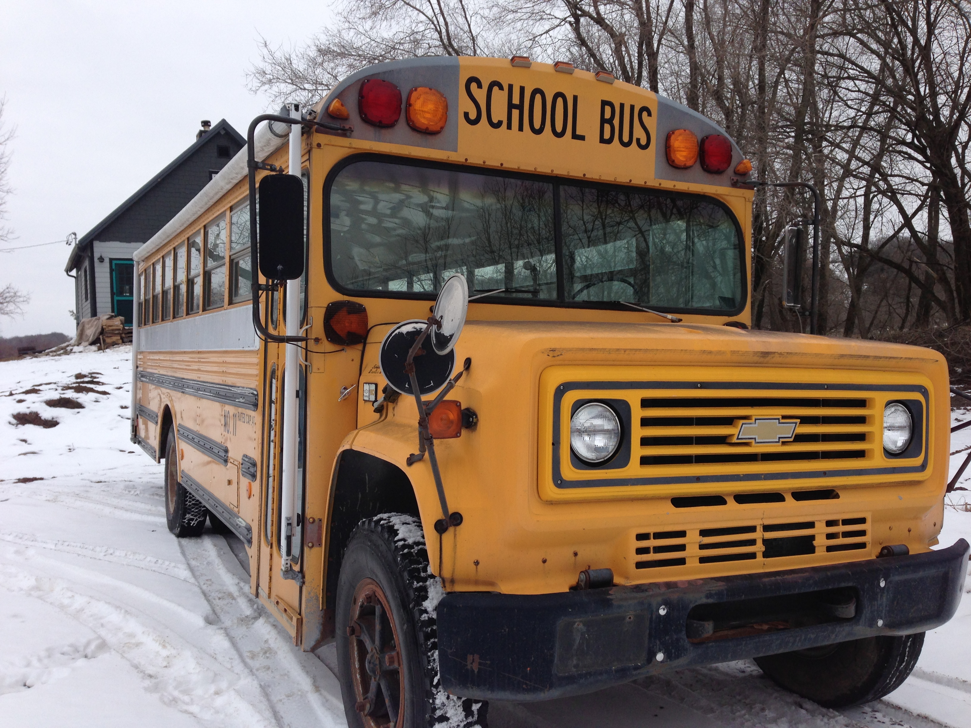 A couple of weeks ago we found this 1984 school bus on Craig’sList. It was the right price, the right size, and the right amount of “camper.” The previous owner already removed all the bench seats, wired the bus with 110-volt plugs, added a roof AC unit, and a roll-out awning on the door side. Sold!