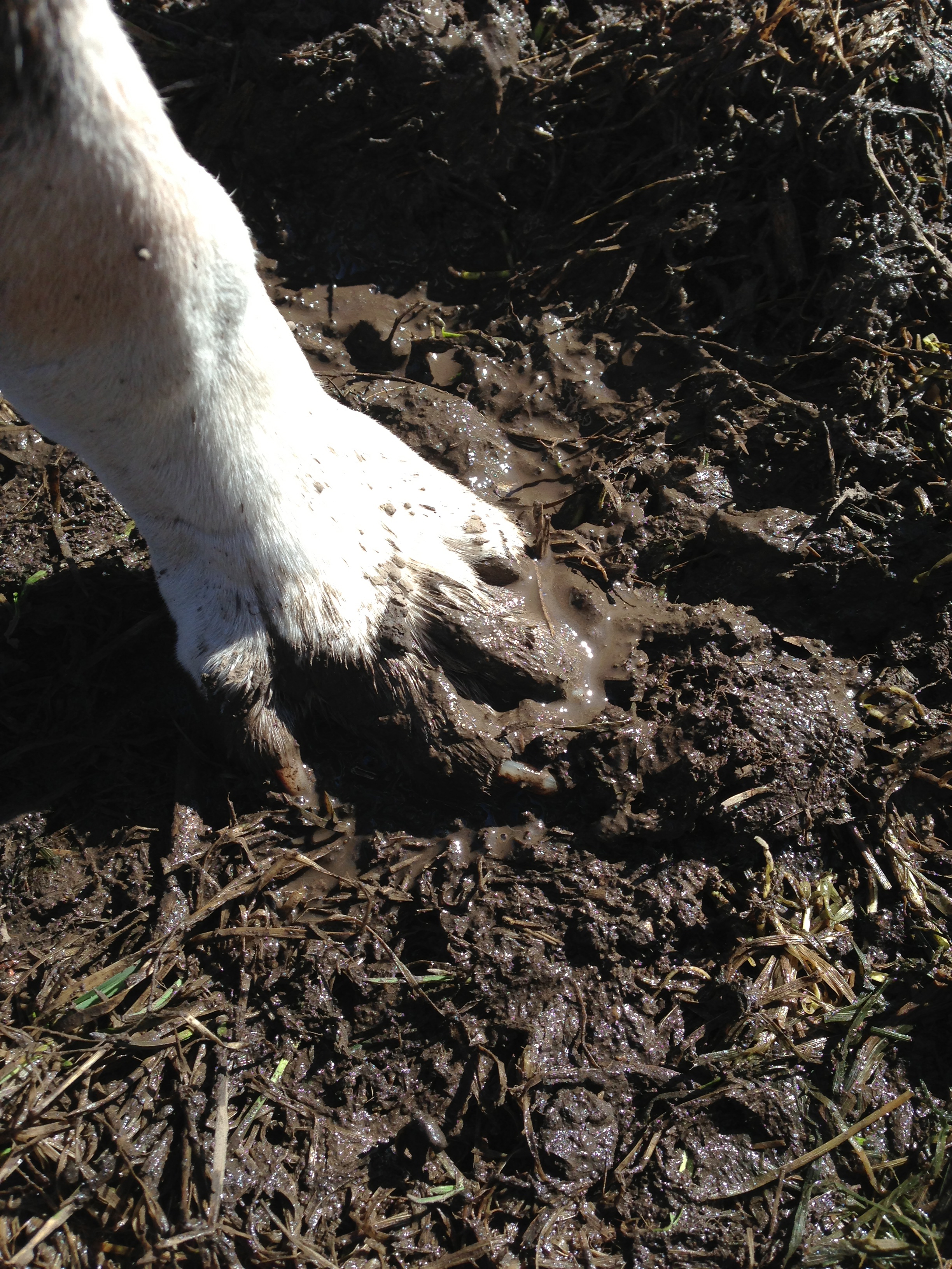 The work began when the temperatures suddenly soared from zero to 60! Really. And the big melt meant some very soggy conditions. It seems that Sadie (pictured above) is a fan of having mud squish between her doggy toes.