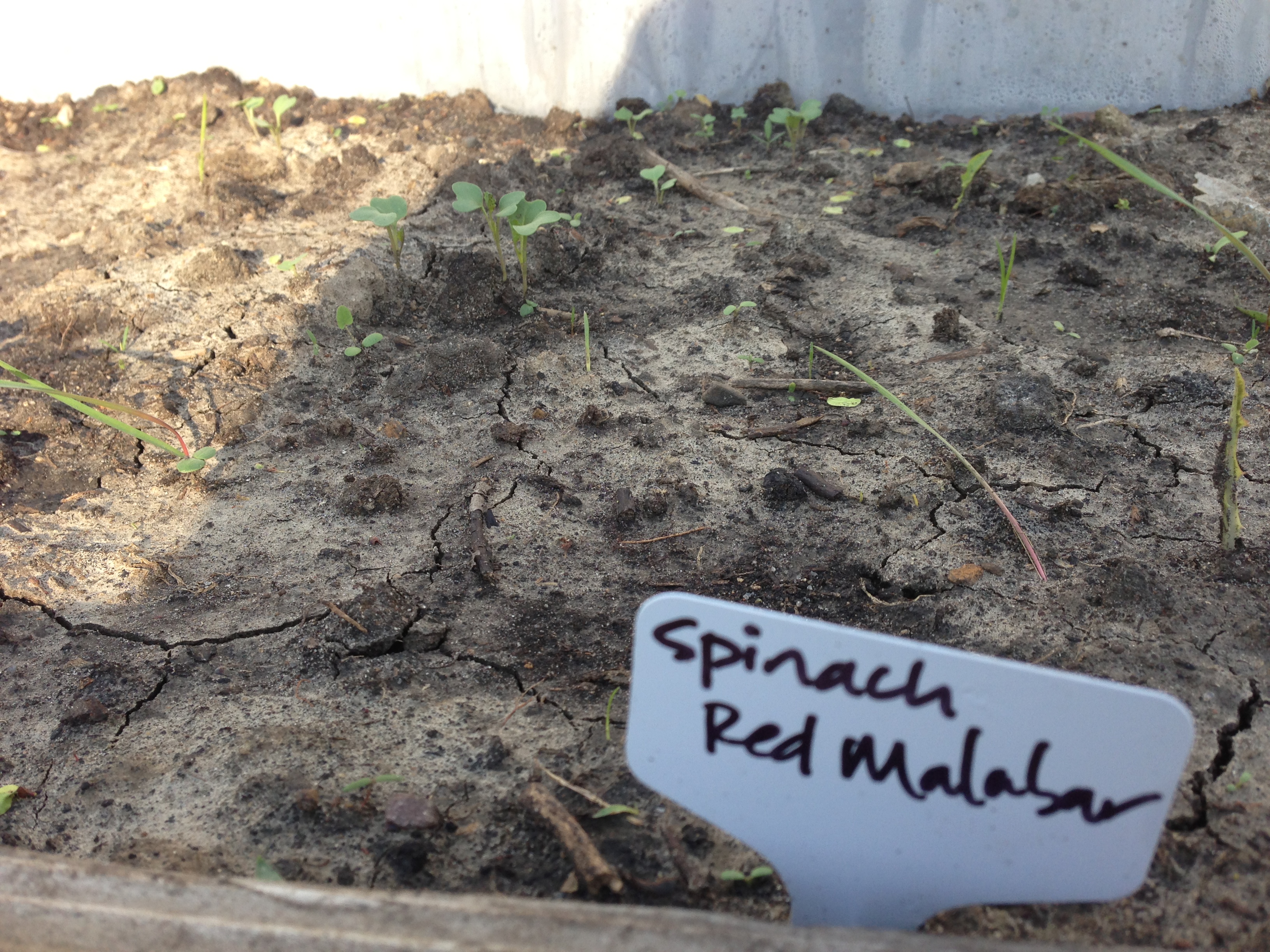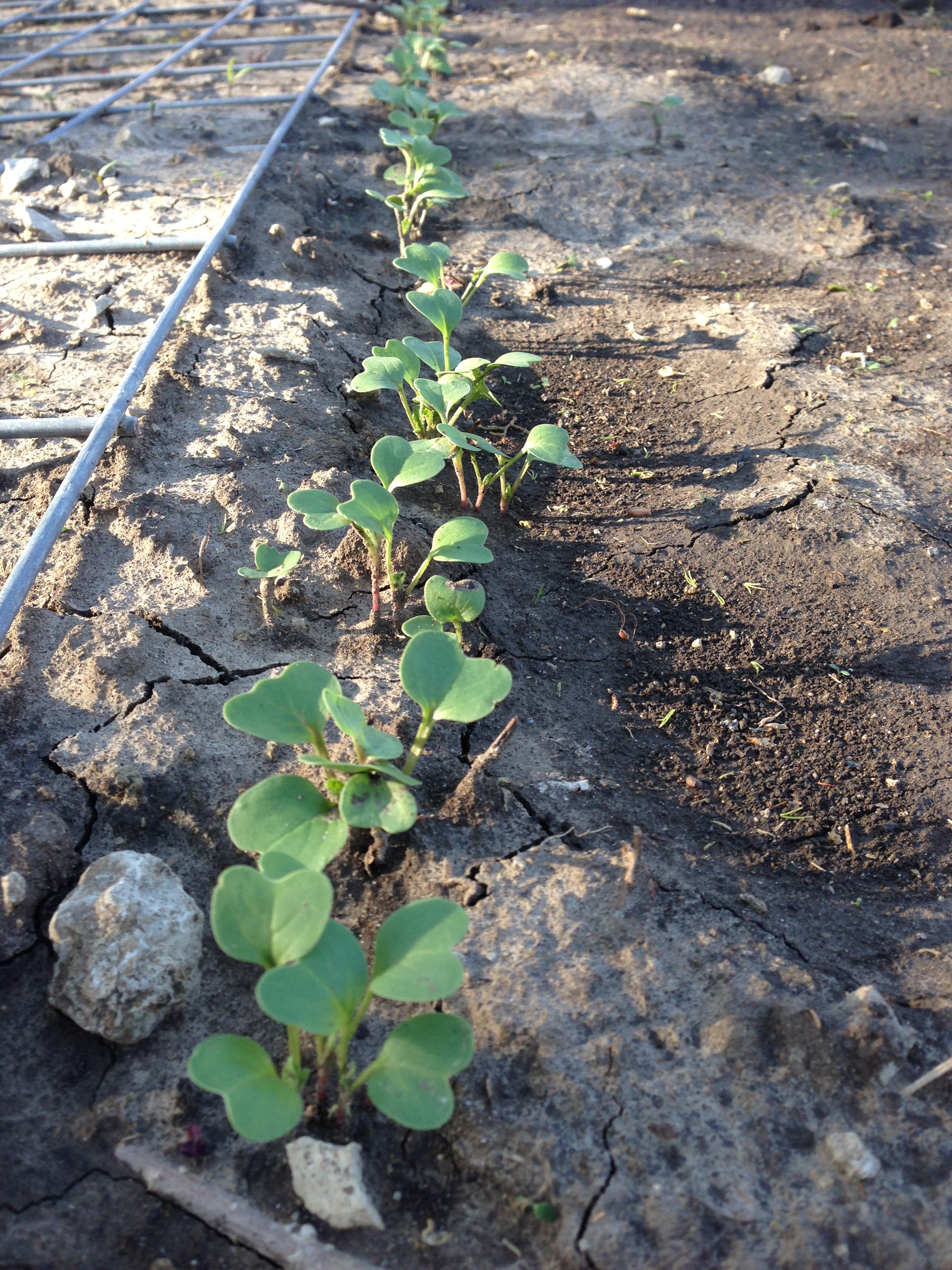 We’ve got fava beans, cilantro, lettuces, and spinach all coming along nicely in the greenhouse! And outside, we’ve go radishes growing like crazy!