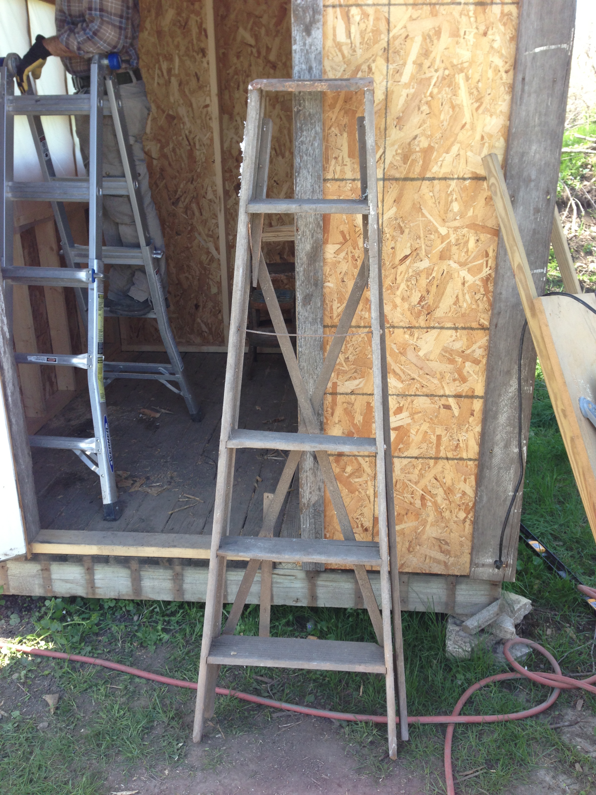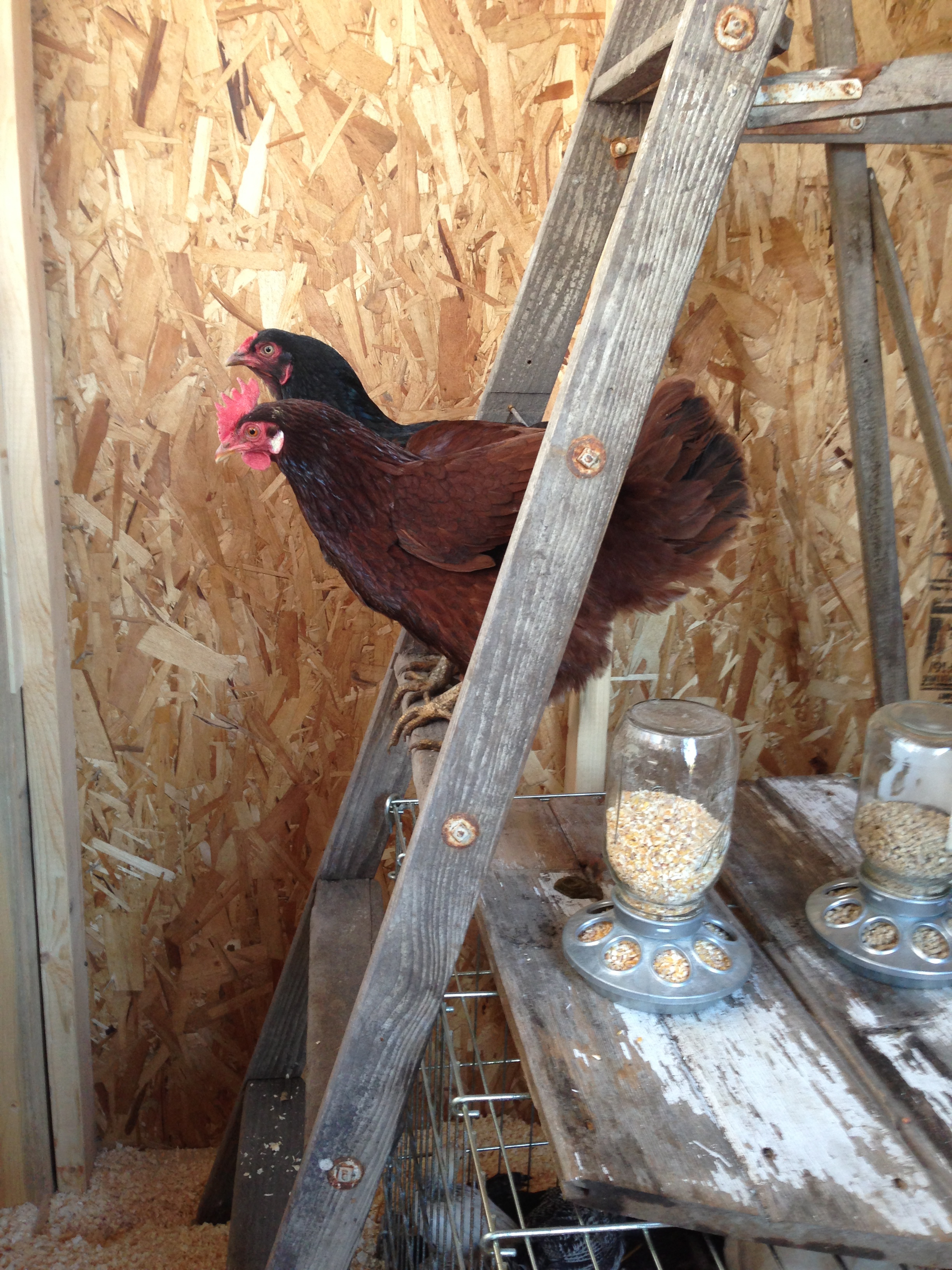 This old wooden ladder was in the basement. A perfect perch and place to roost!