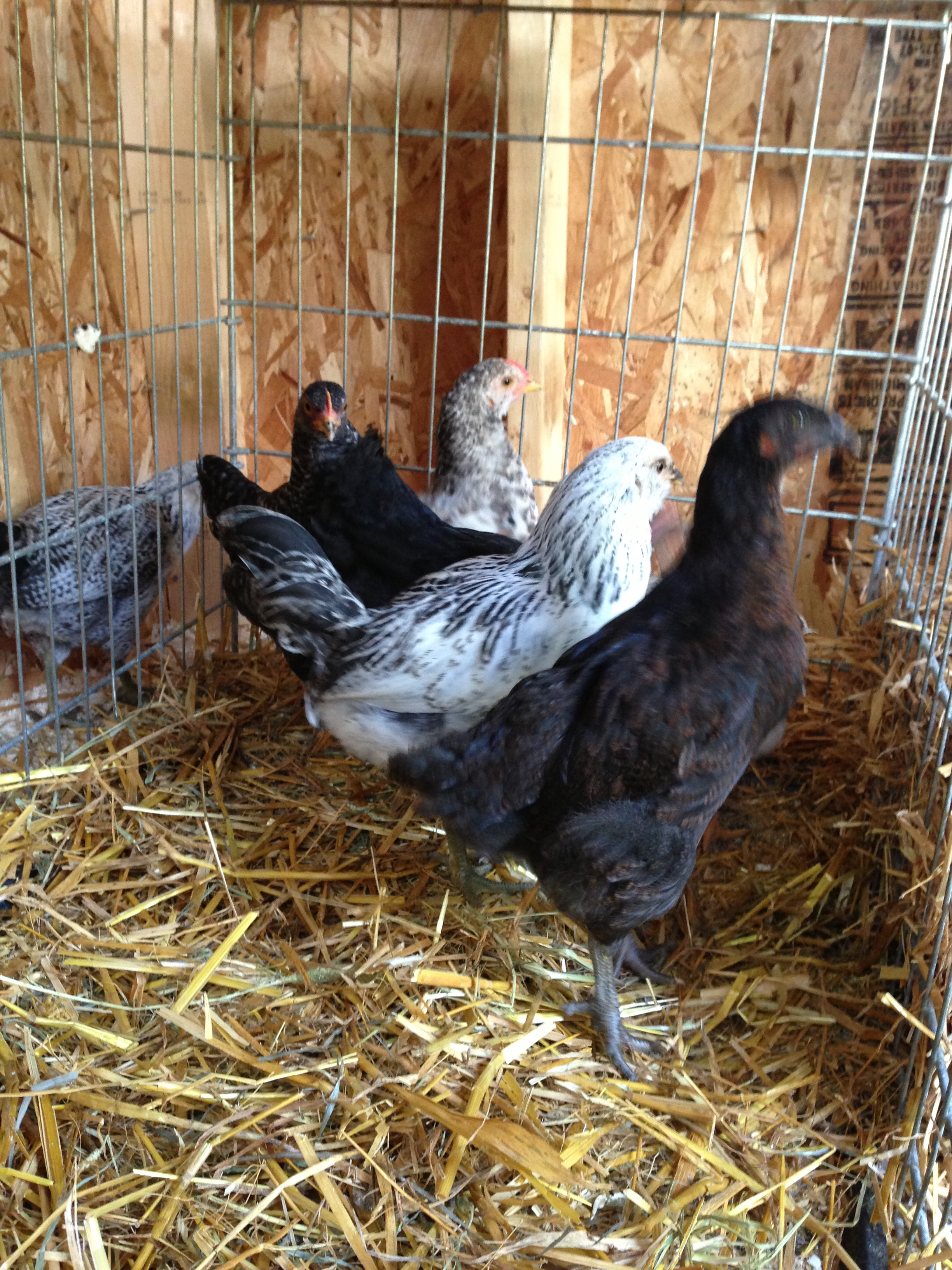 The chickens seem to be doubling in size every few days, too! The seven little ones we purchased several weeks ago are looking less like pullets and more like grown ups. Last week we purchased four more pullets, a few weeks younger than the seven teenagers. And these are literally growing before our eyes!