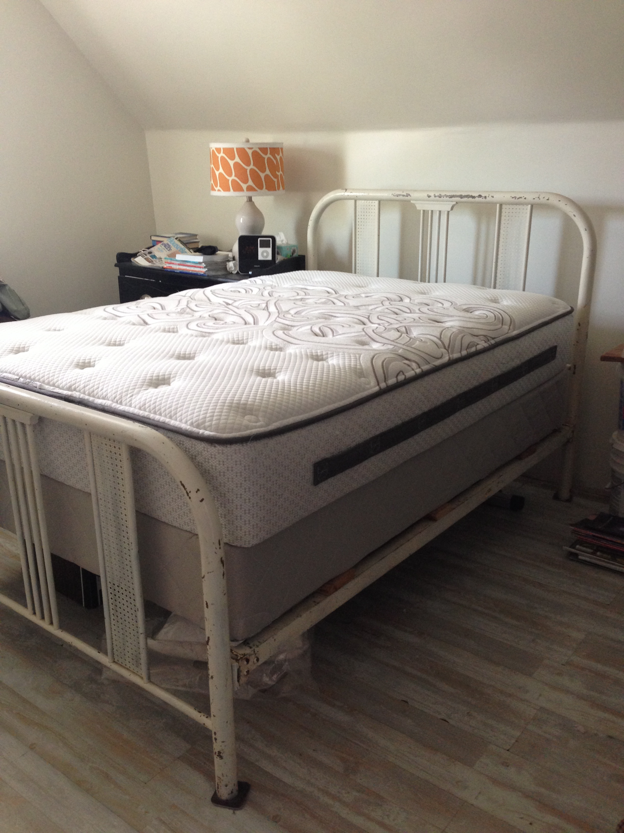 New mattress and box spring, new floor, feeling like progress on this renovation adventure!