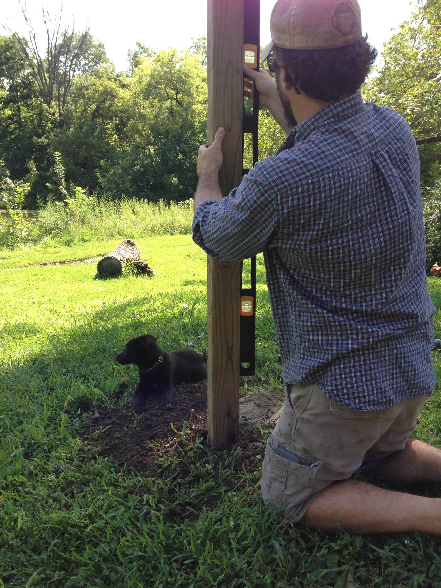 Tiny Okra helped make sure he was doing it right. She looks so little in this photo that was taken just a few weeks ago!