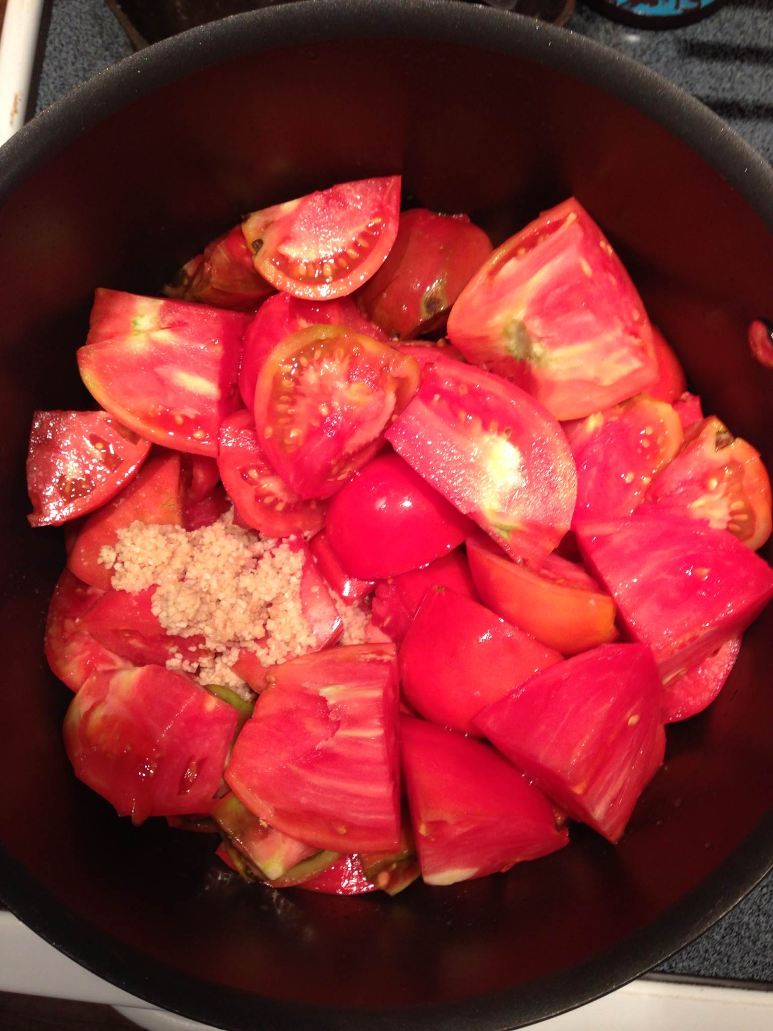 Sum-sum-summatime and the garden is bountiful! I can’t stand to see all the yummy goodness go to waste. While I’m shoving garden tomatoes into my mouth at ever opportunity, there’s no way I can eat them all. So I’m also doing my best to capture summer’s goodness in a jar. This week I made tomato sauce. And there’s not doubt in my mind that I will be repeating this for the next several weeks!