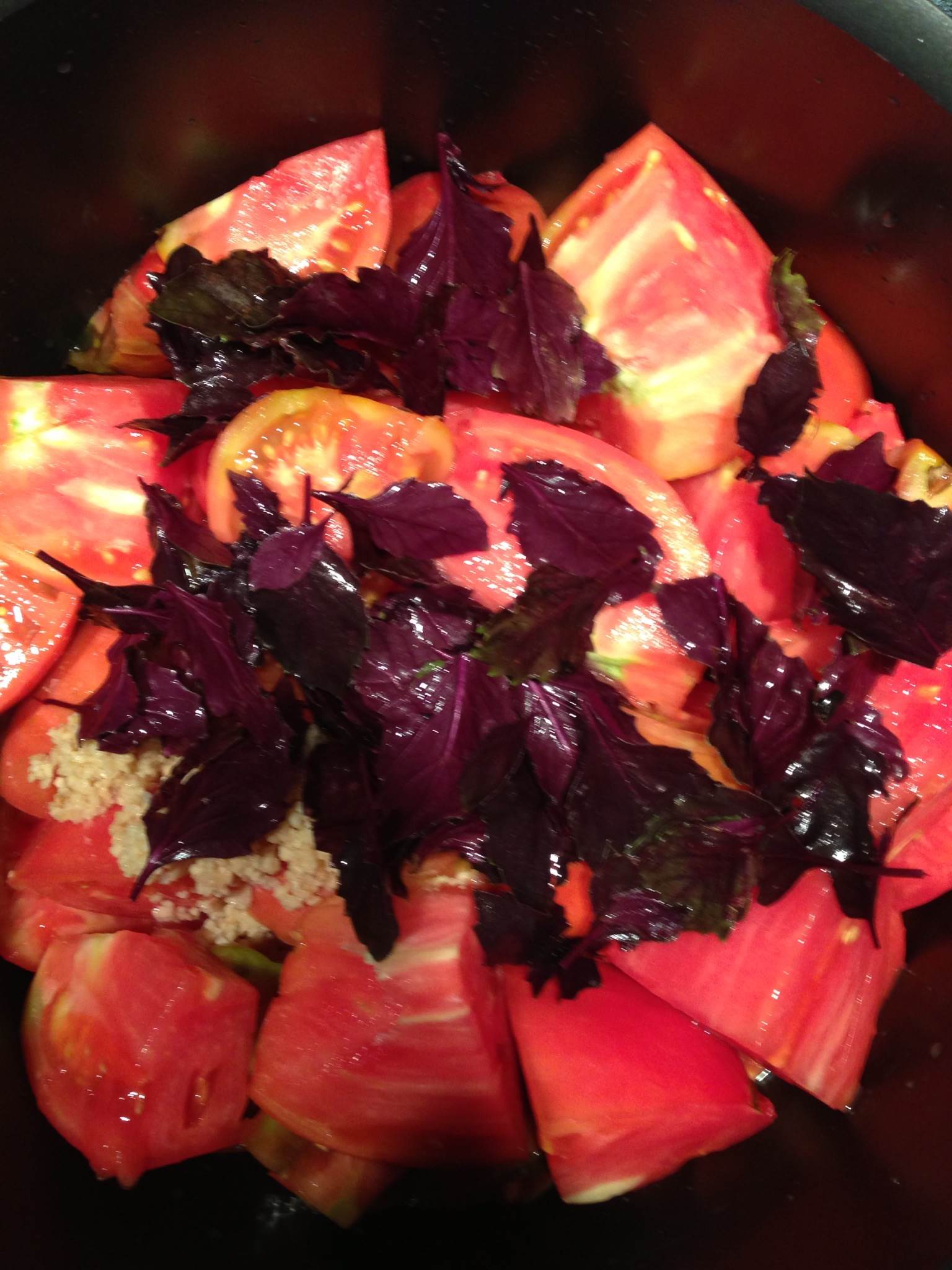 Cue the basil! This is the Dark Purple Opal variety we still have TONS of! [Note: If you would like some fresh basil, just say the word!]