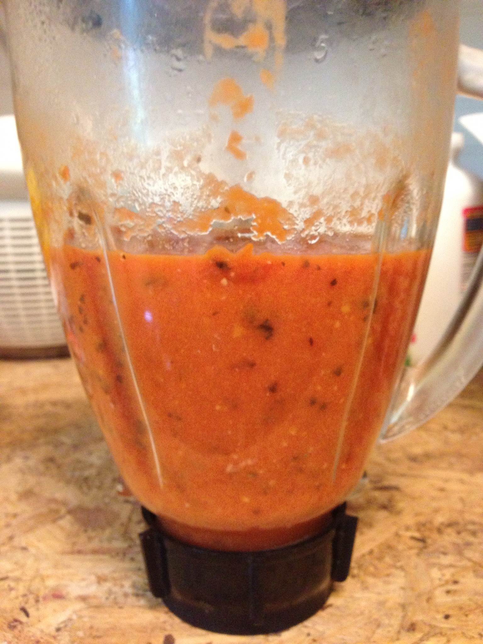 After the tomatoes cooked down on the stovetop, I transferred the sauce to the blender for a spin.