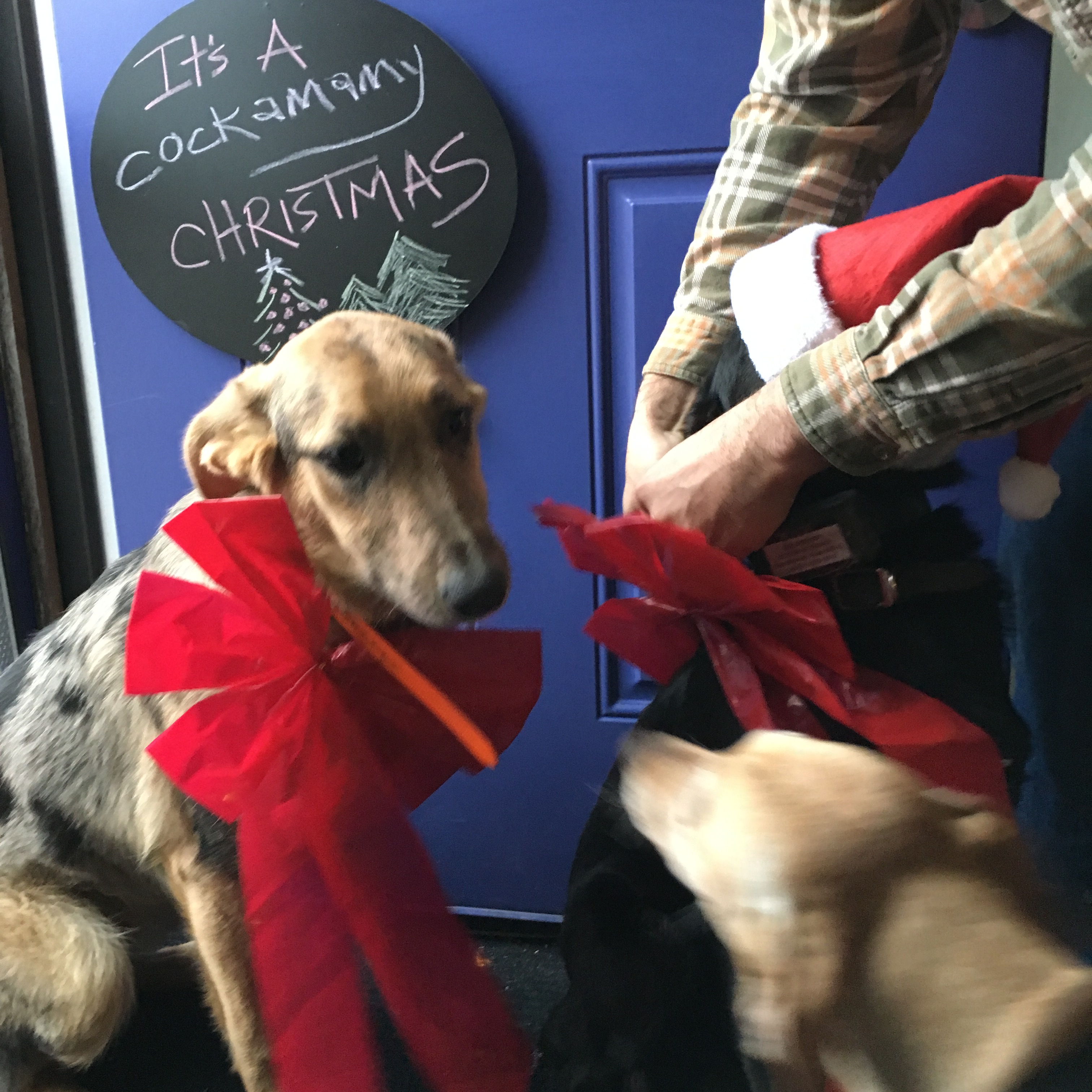 As with all things Cockamamy, it went a little…well, cockamamy. You might imagine with three dogs—a pair of seven-month-old pups and a rescue dog who has never been able to sit still or mind—a photo is a lofty goal. You would be right.