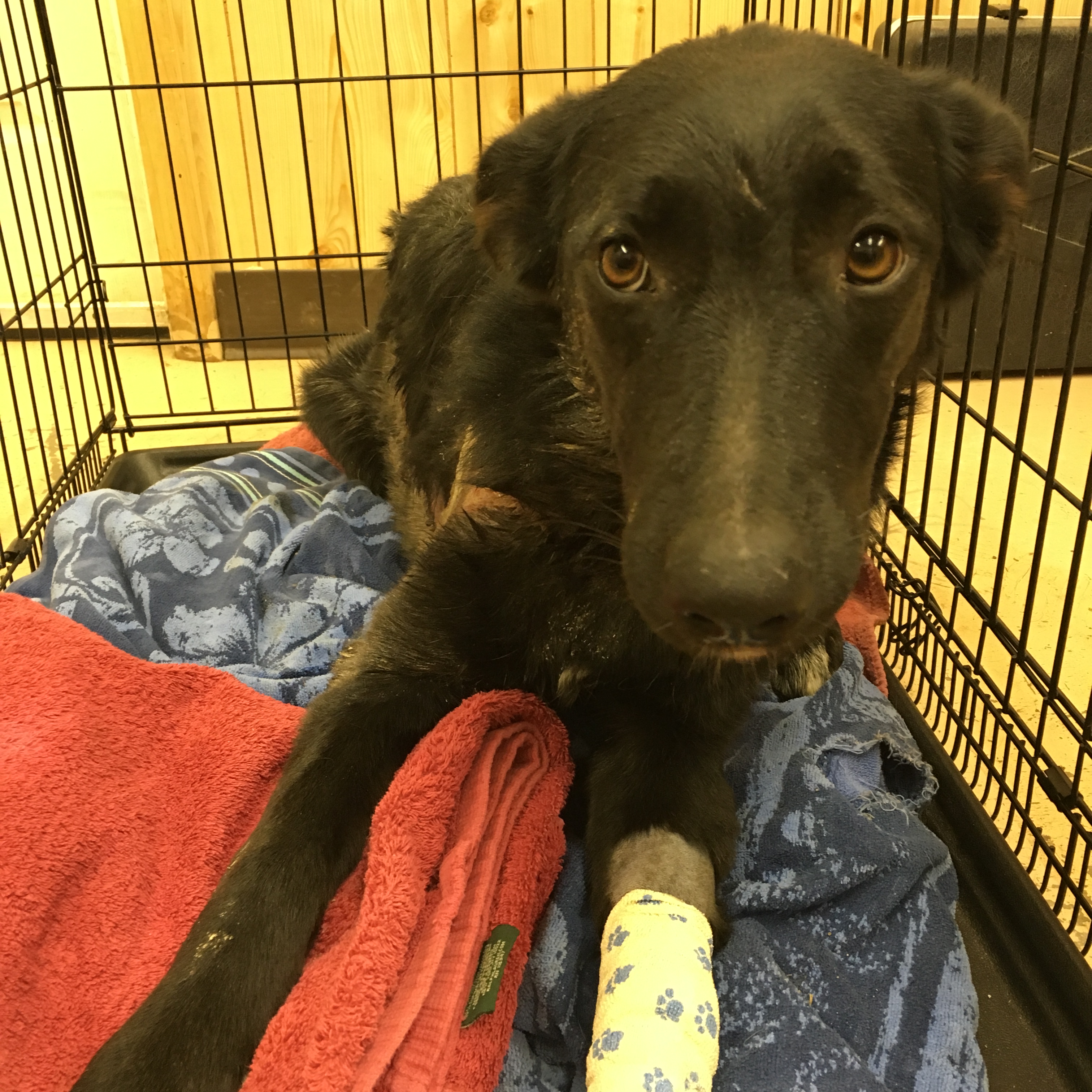 Sunday afternoon, when I was finally home, we went to Annie’s office to visit Okra. I wasn’t ready for how chewed-up she was.