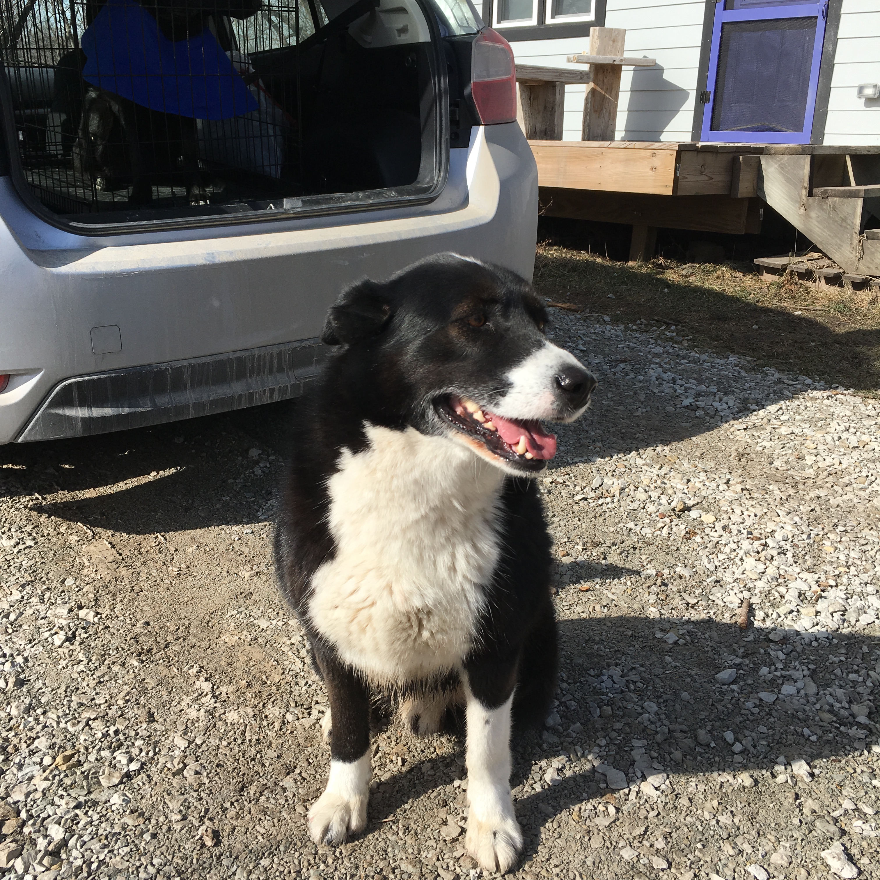 Saturday around 6pm Ben stepped out the back door to go close up the chicken house and, as he walked down the deck stairs, gave a whistle to the pups. They came running toward him. It was dark outside and there was a big truck barreling down the hill. Suddenly, the truck slammed on the brakes and Ben heard the terrible thump and yelp that stopped his heart. The truck didn’t stop…but Okra ran straight to Ben, inside the house, and to her crate. She was hurt. Badly.