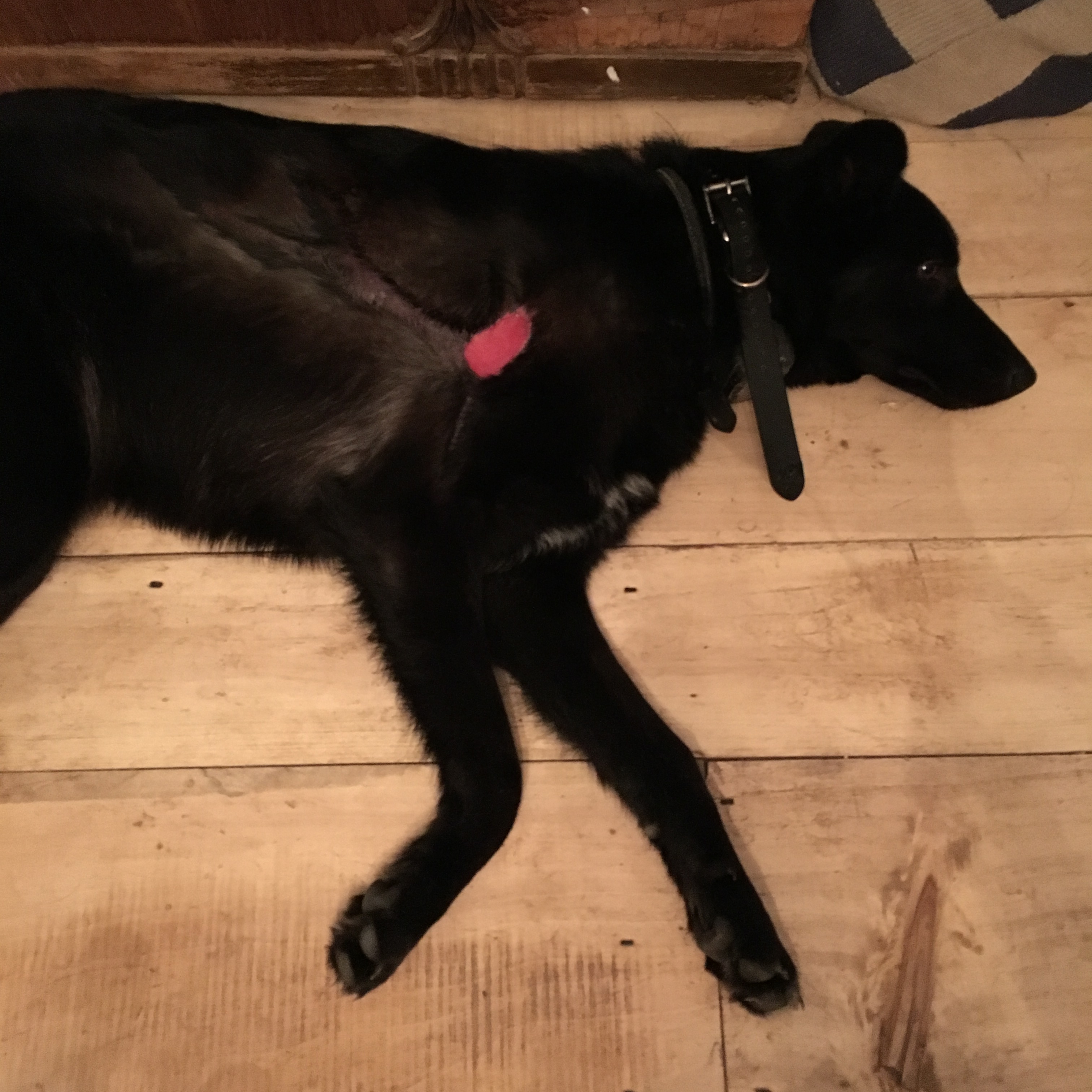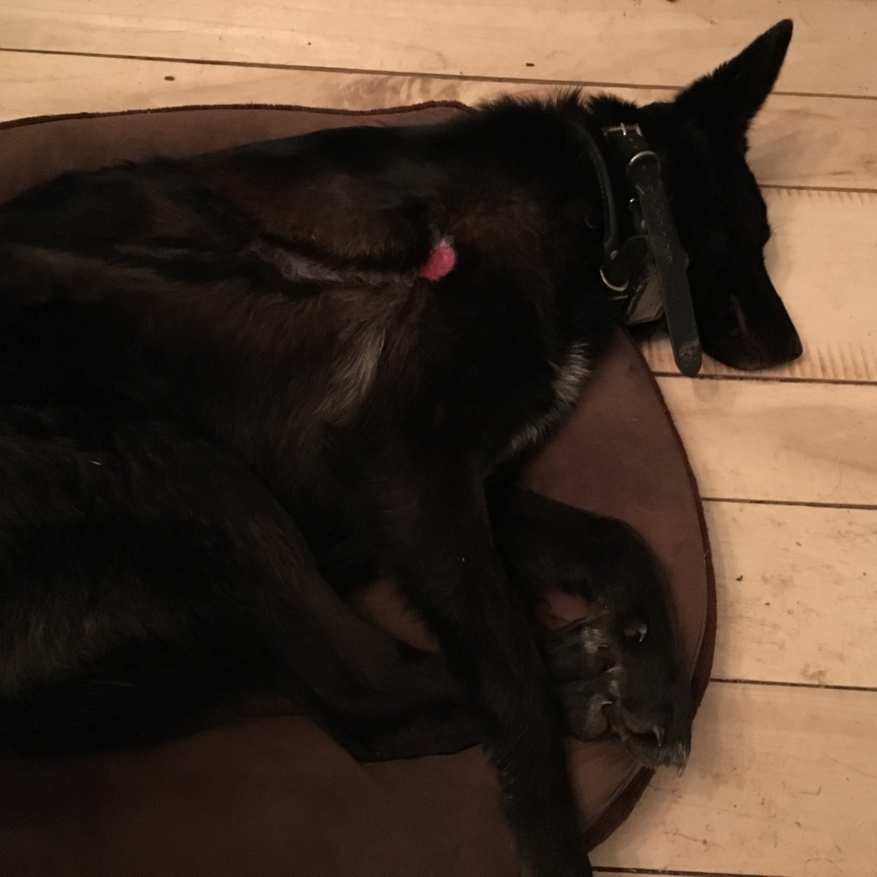 That was about six weeks ago. Today, her side is completely healed and covered in hair! It is amazing to me to look back at these images and realize just how quickly she has recovered. The accident was the last Saturday of January—only two and a half months ago!