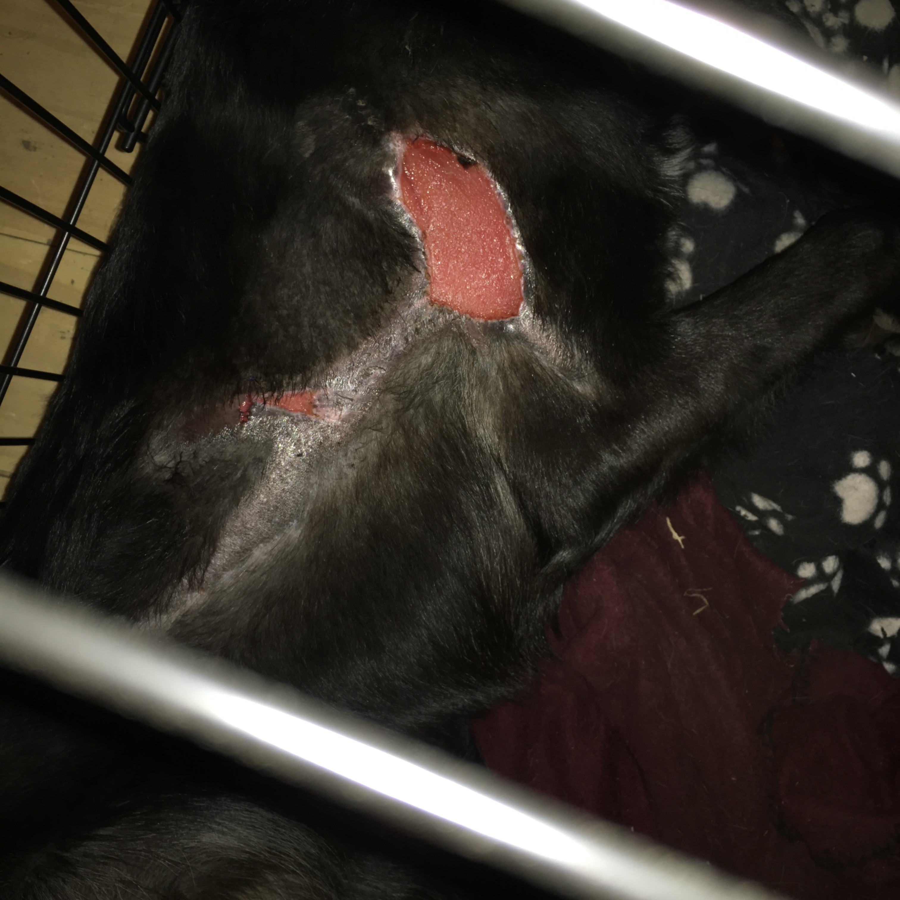 Last time I posted about our sweet Okra’s journey of healing, her wounds looked like the photo below.