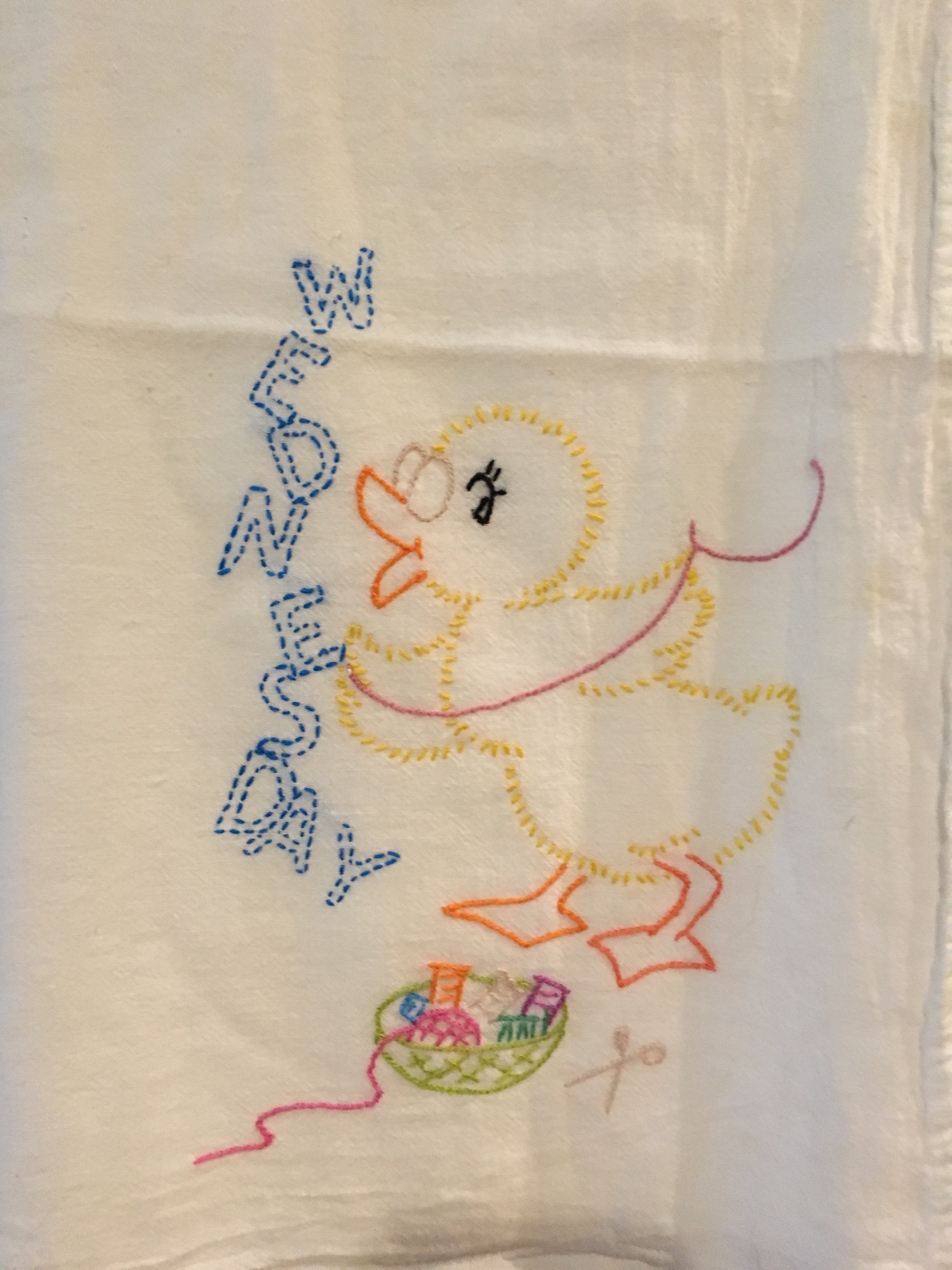 The adorable tea towels, below, were made by Beverly’s dad’s mom—Ethel Goddard Crabb, born in Boone, IA, 1888.
