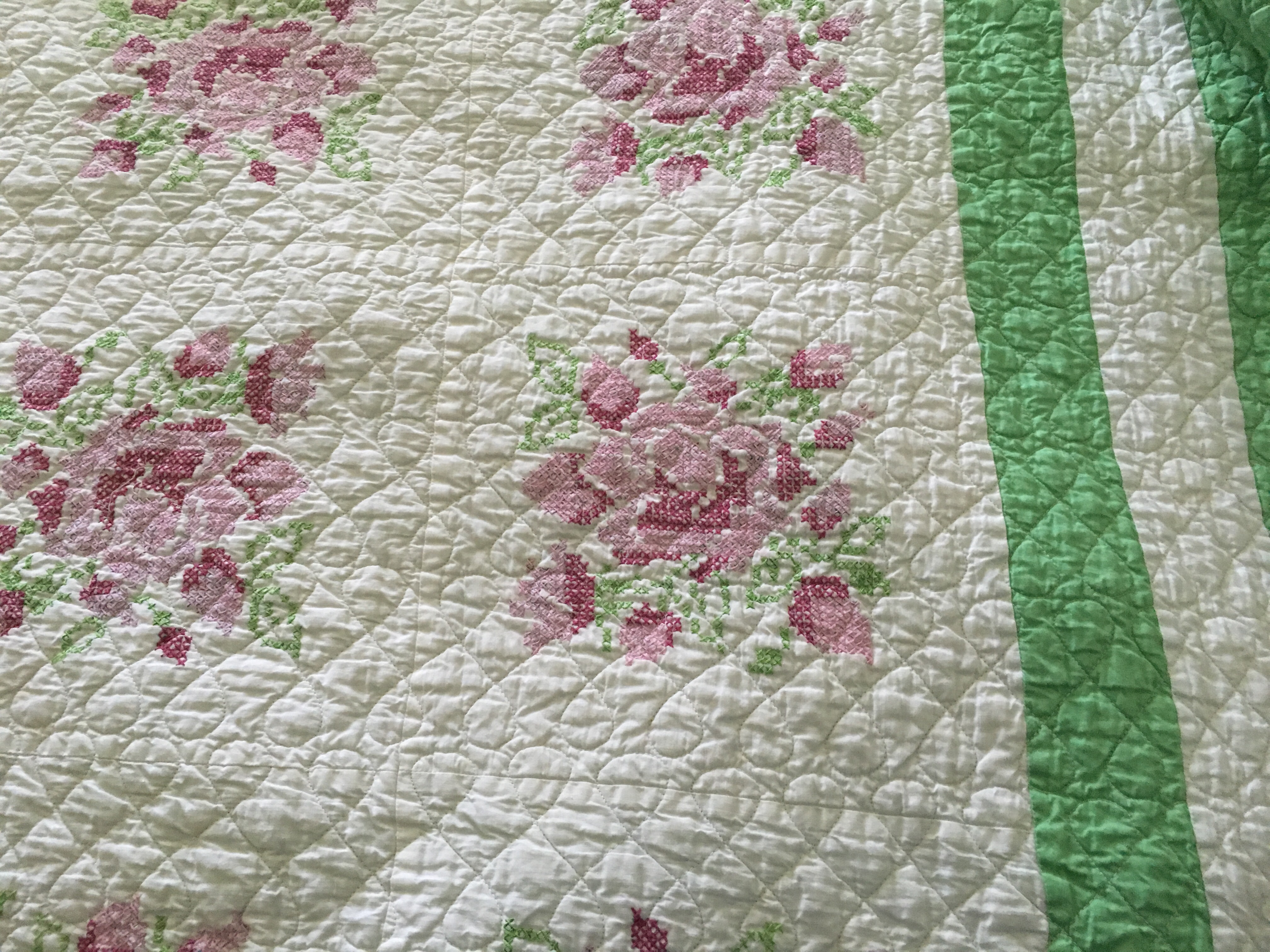The quilts and tablecloths below were made by Beverly’s mom’s mom—Christena Faatz Weidner, born in Neely, NE, 1890.