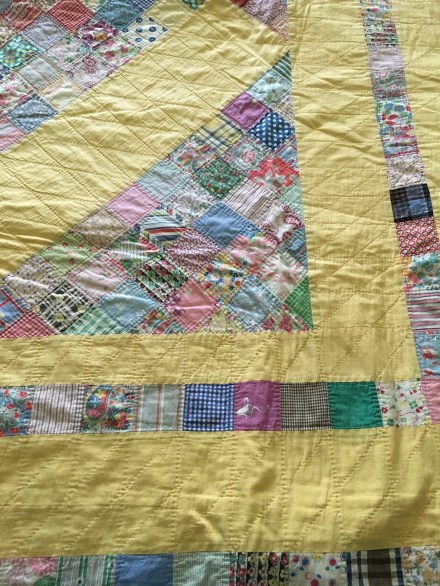 The best part (for us, anyway) of that process is that, Beverly, Ben’s mom, entrusted us with the custody of several hand-crafted heirlooms created by both her maternal and paternal grandmothers. I’m a bit nervous about how amazingly well-kept and in good shape the quilts are. How could they be more than 50 years old? And how will I ever be successful in keeping them so beautifully clean, protected, and amazingly gorgeous? Note: I will not store them away out of sight. Part of the honor of being the custodians of such amazing pieces of art is using, displaying, and loving them! So wish me luck…and send along the borax (or other all-natural stain remover) because I’m certainly gonna need it!