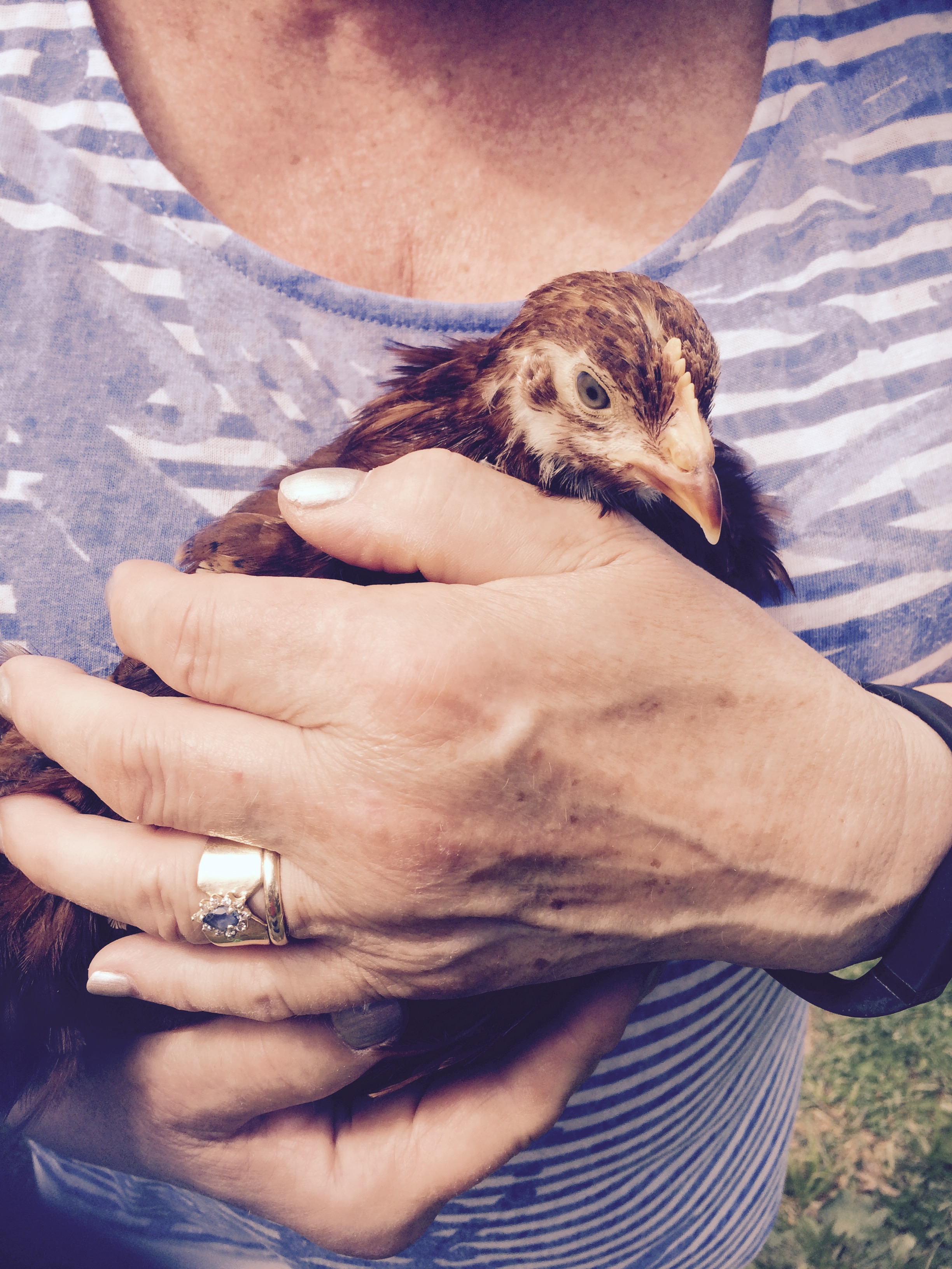 Her 13 year-old daughter, Makayla, had received two tiny chicks as a gift. At this point, the babies, named Daisy and Marigold, were about six weeks old. They had imprinted on sweet Makayla, who was a very attentive and caring (future veterinarian) Mama, but they were living in the family garage and, as Kristin said, “Pooping on everything!” She knew the time was quickly approaching when the chicks would need to leave their suburban home and find a new place among their brethren on a farm. Cockamamy to the rescue!