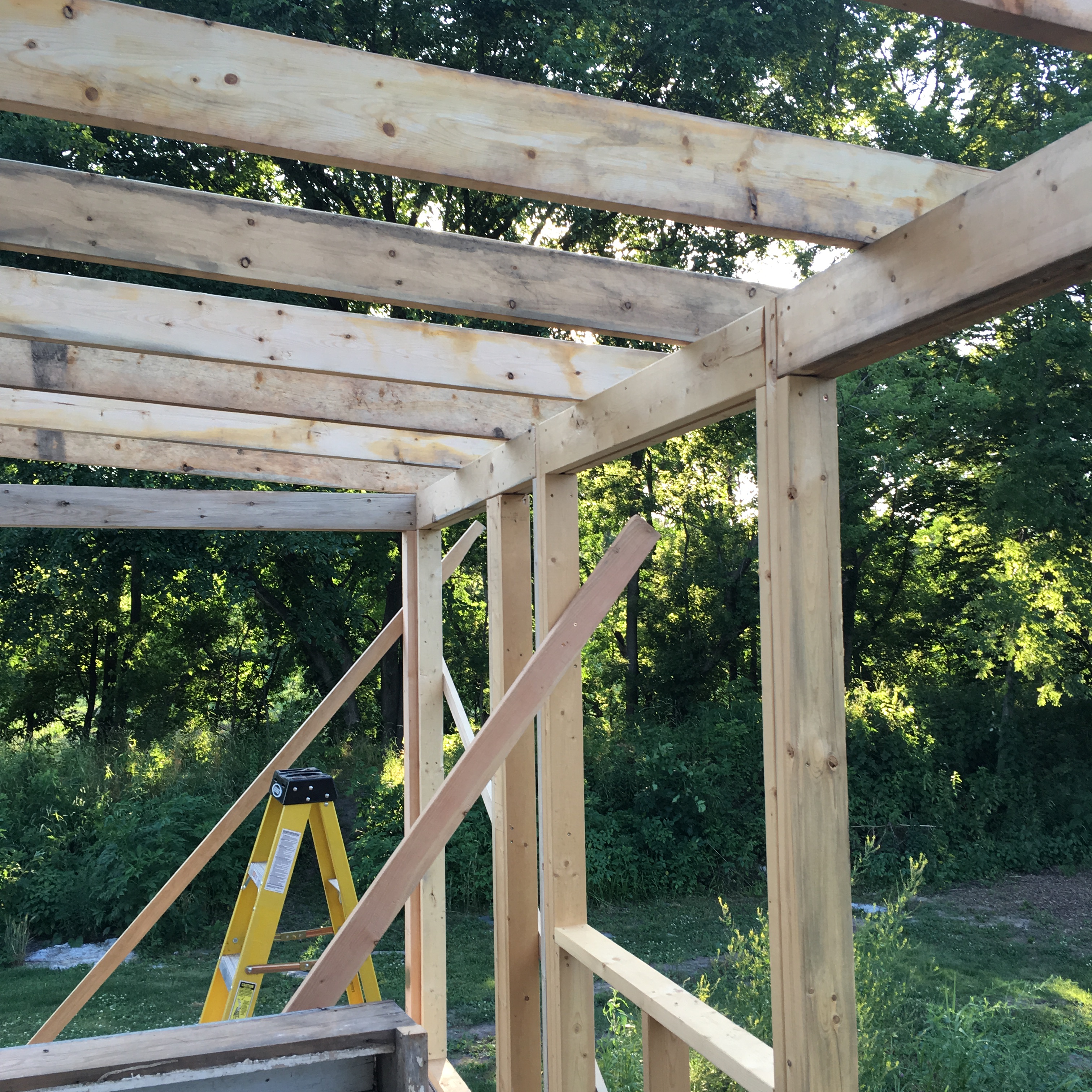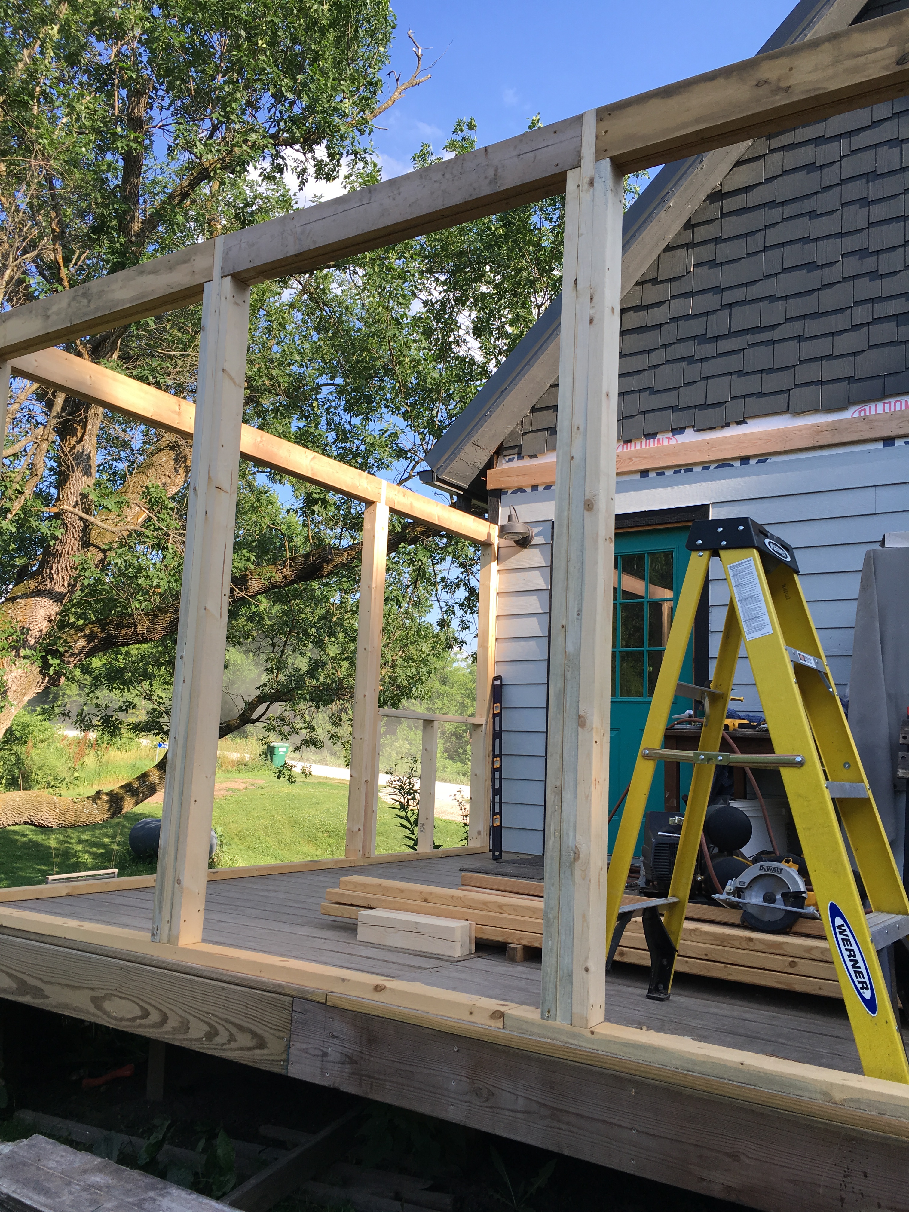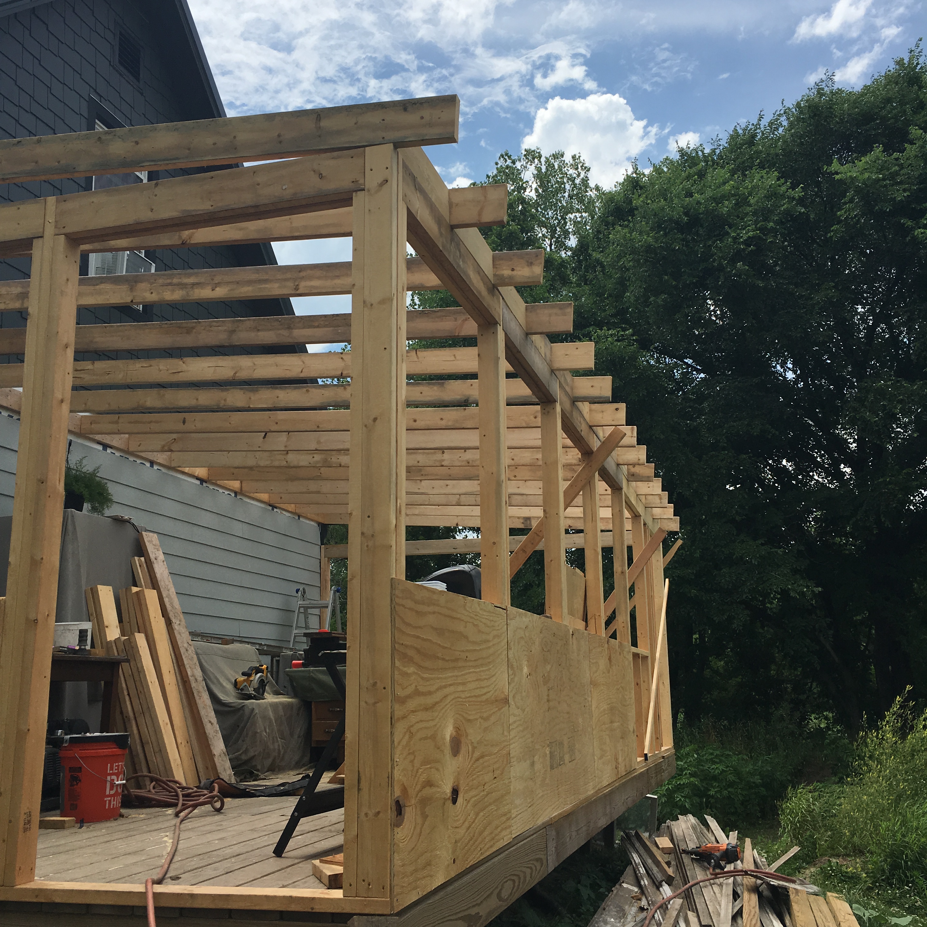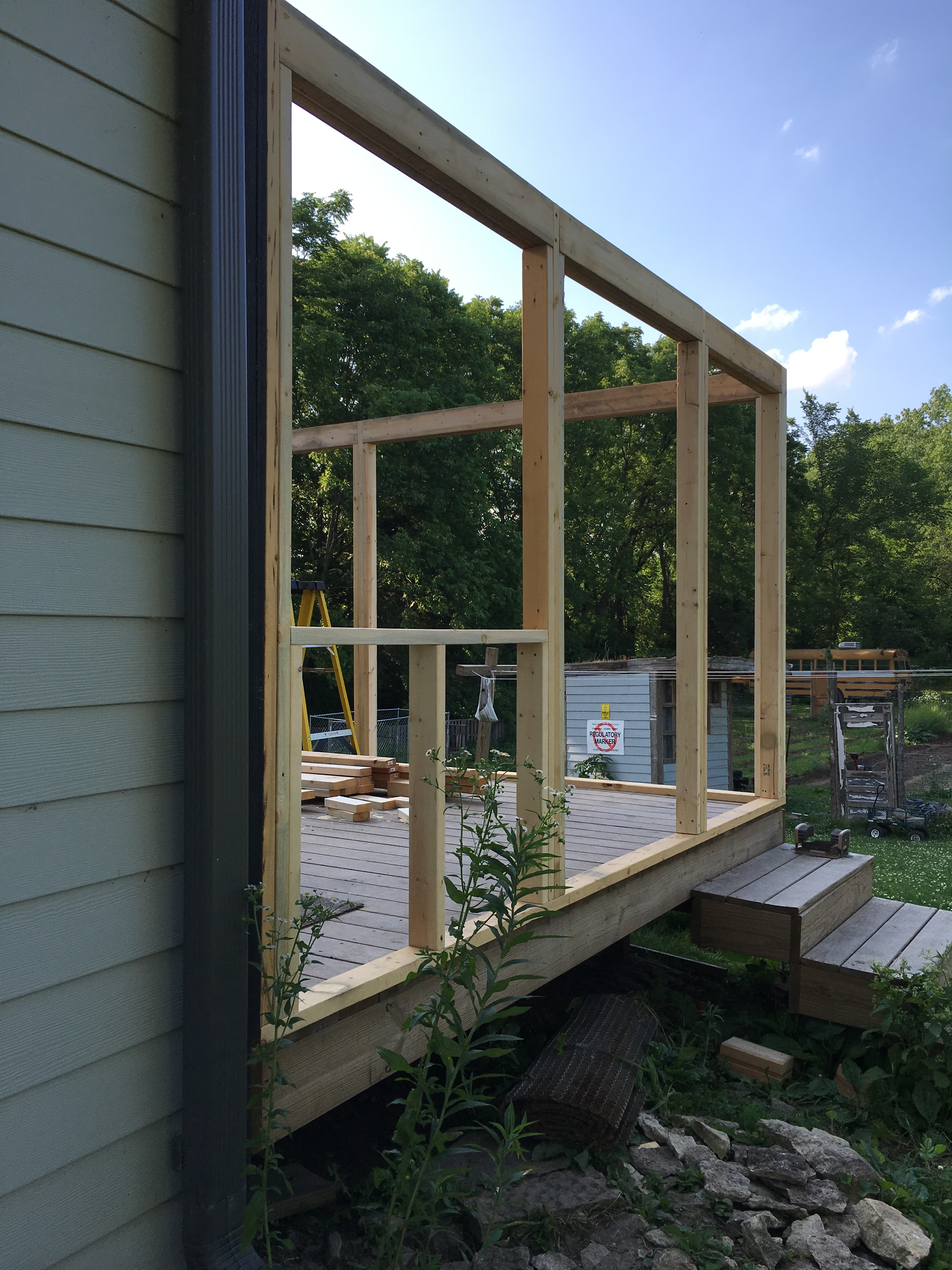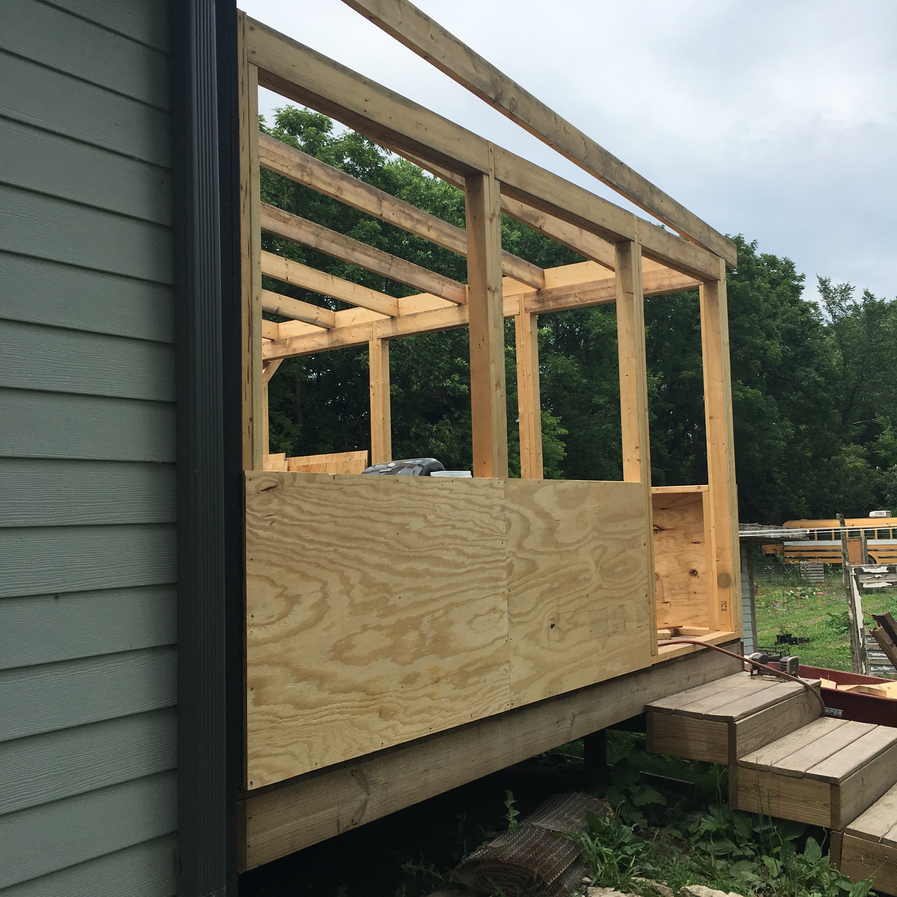 First thing: Ben tore of some of the siding we worked so hard to put on. This alone gave me anxiety. But the ledger board he added is where the roof of the screened room will attach to the house. But still. My beautiful siding!