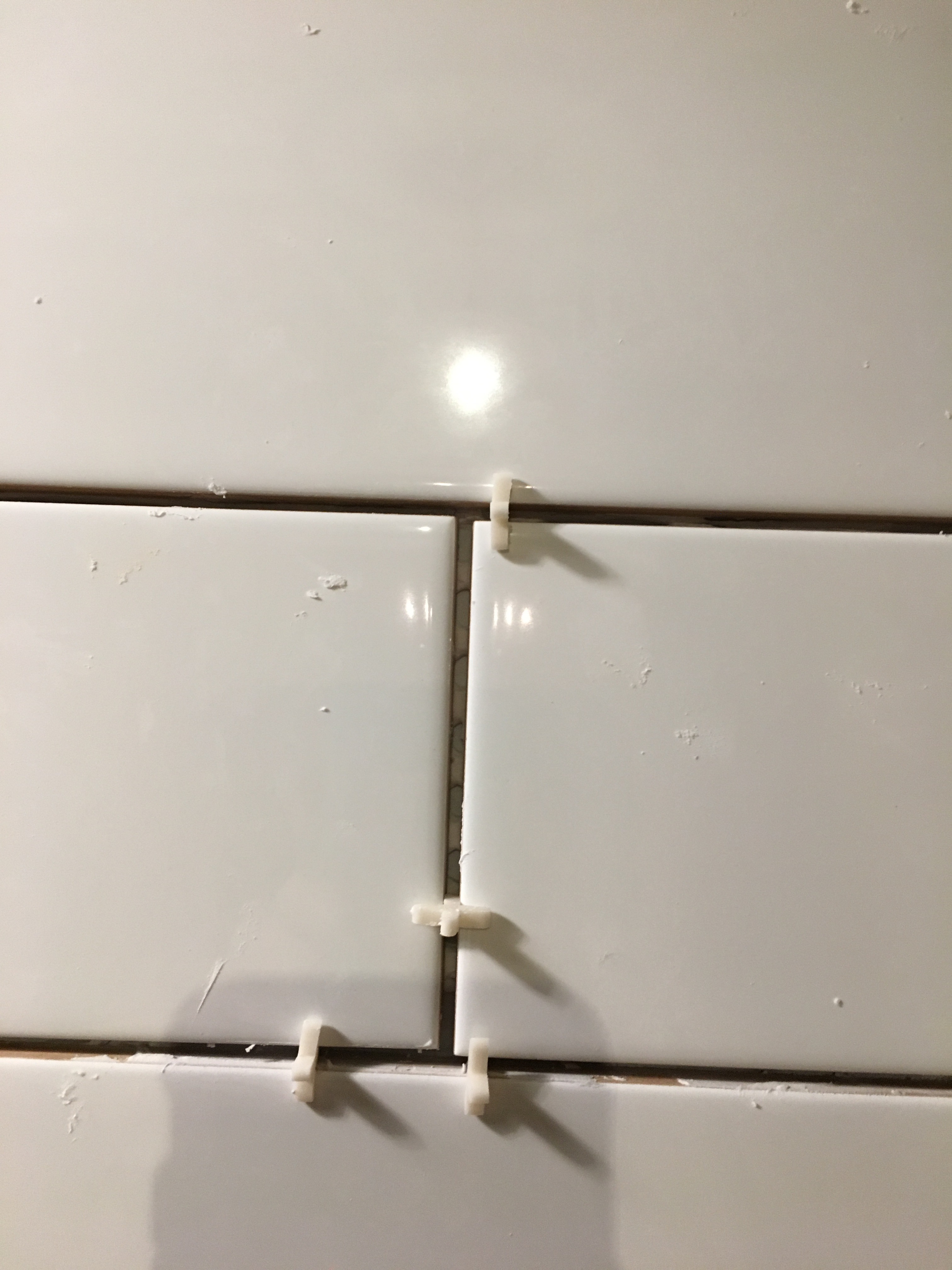 Second Lesson: The X spacers are bullshit. Don’t go there. Make the drive to Lowe’s (in my case, a 90-minute round trip) and get the amazing T-spacers. After about an hour of fighting these stupid X things, I threw in the trowel (ha!) and called it a night. The next morning I was out the door to Lowe’s.