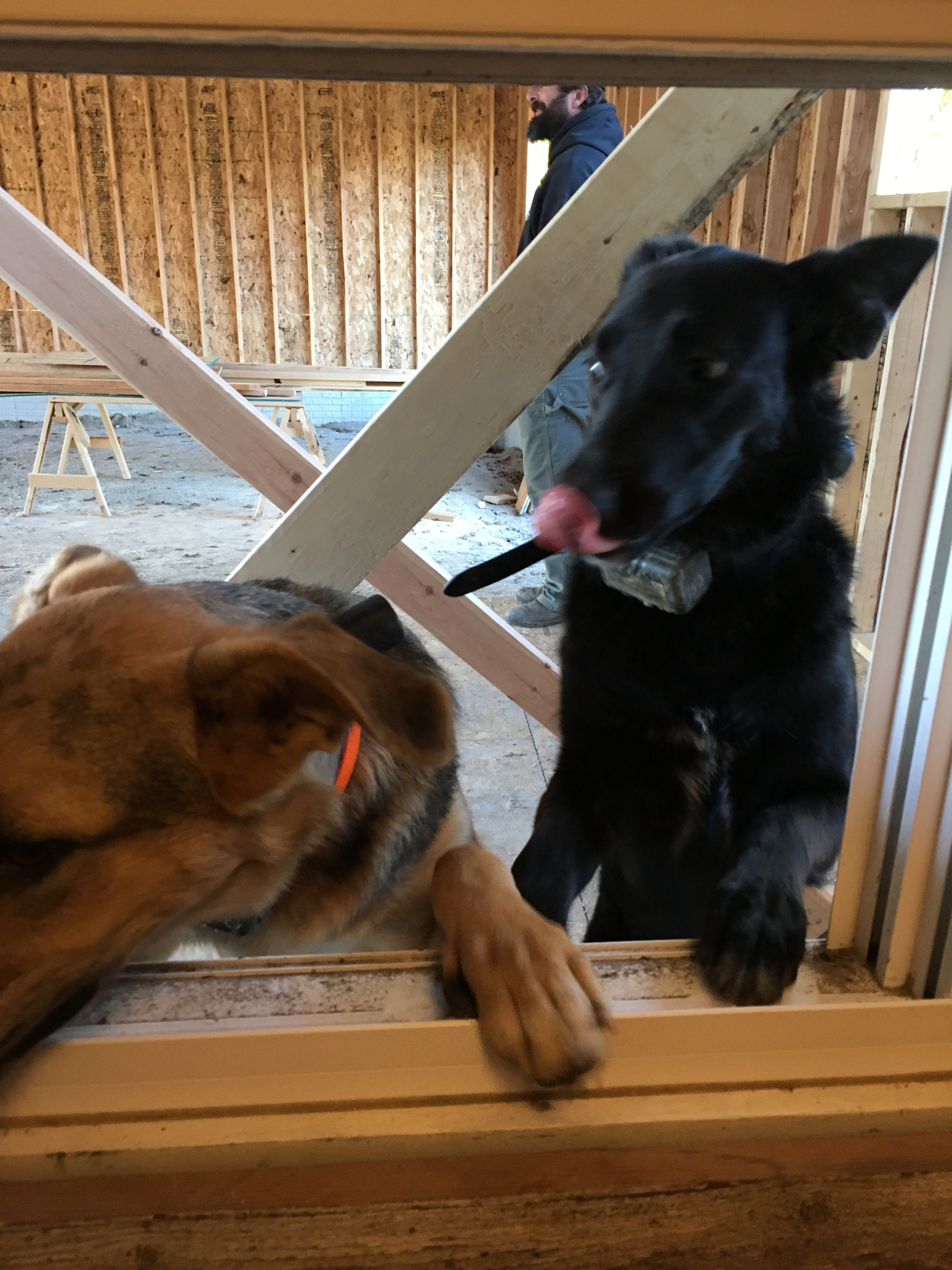 These two are pretty excited that they can be inside the garage and stick their heads into the laundry room to say hello. It’s gonna blow their minds when that window becomes a door!