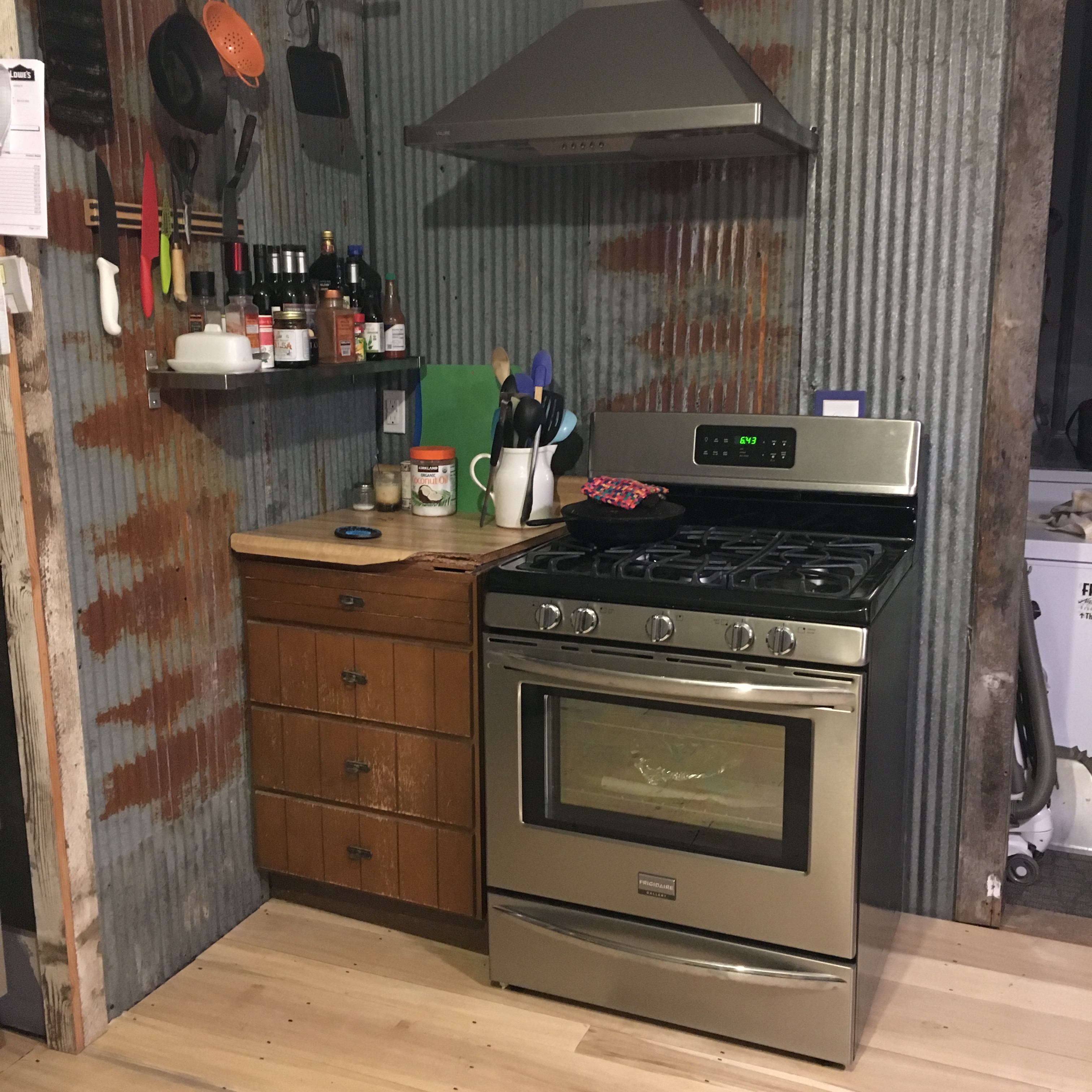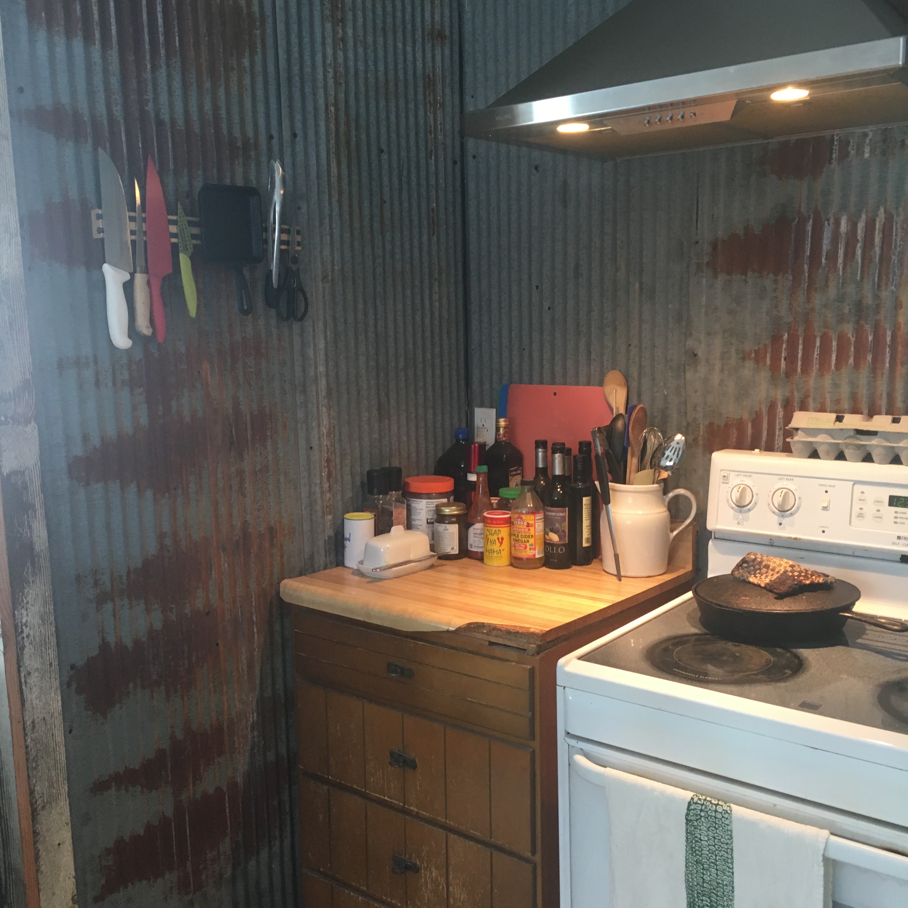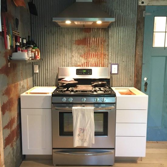 To the almost-finished cooking nook…I obviously need to take this photo again with the countertops in place, but you get the idea. Read my post about the new cabinets and countertops here.