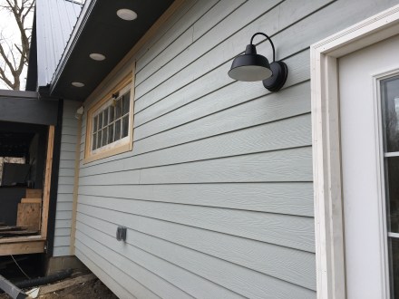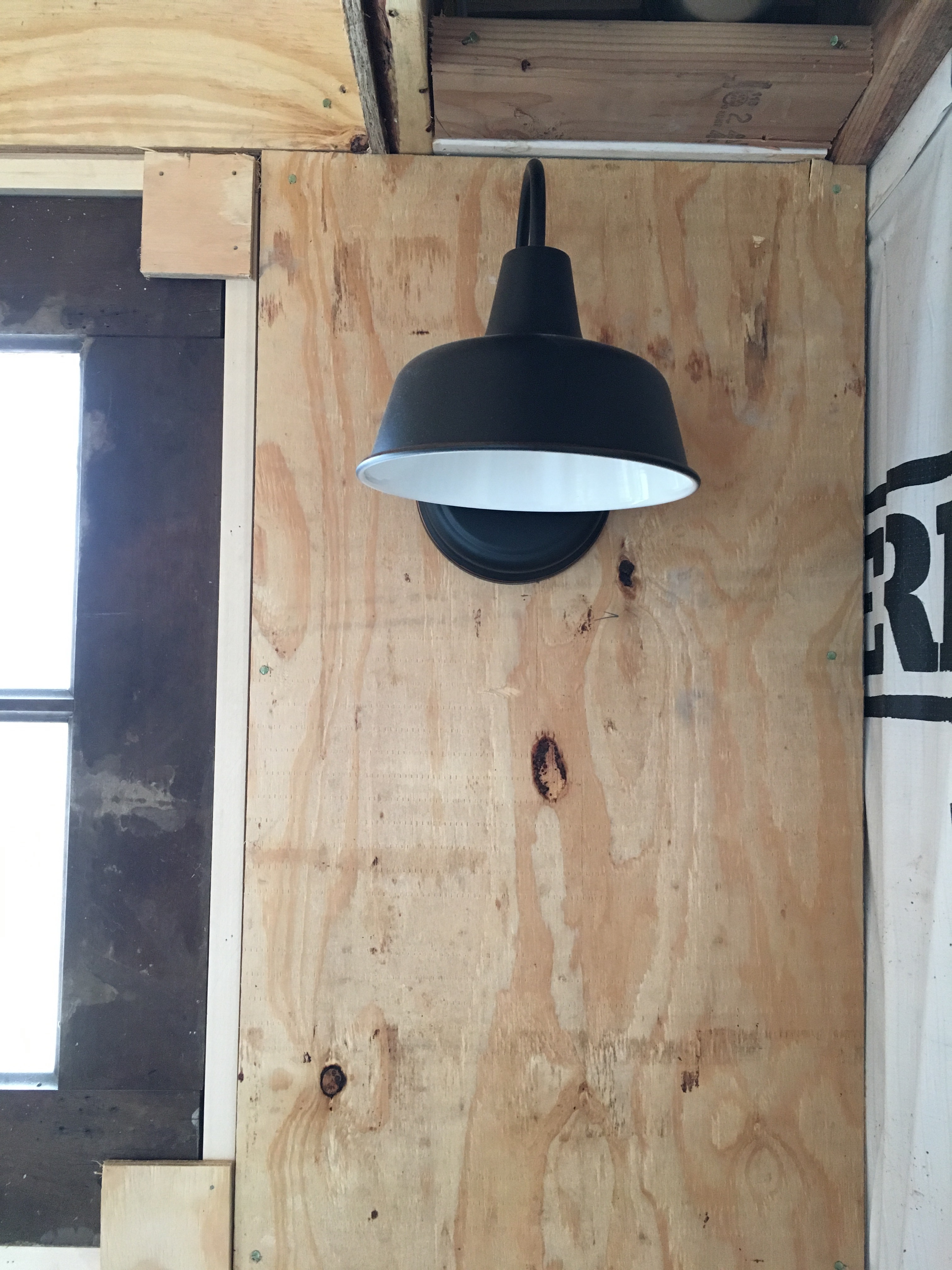 3. The mudroom. This space is definitely still a work-in-progress…we still plan to build a wall and install a barn-style sliding door to separate the room from the garage. But there has been some progress, including lighting (the same sconces as outside)…