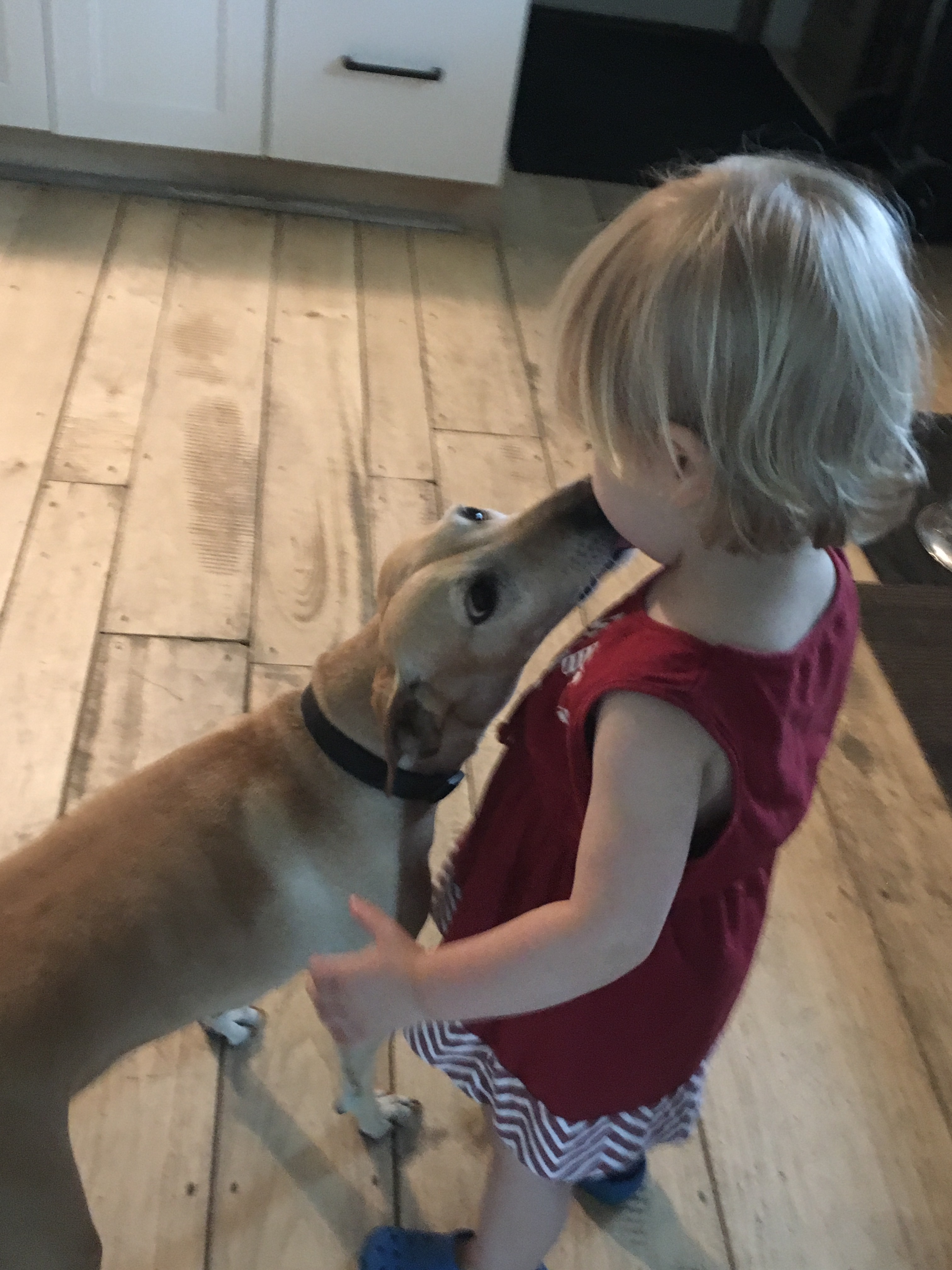 SO. MUCH. PUPPY. LOVE. And kisses (see above for parental approach to germs. Also see above reference to smoothie remnants/dog snack on Totsie’s face.).