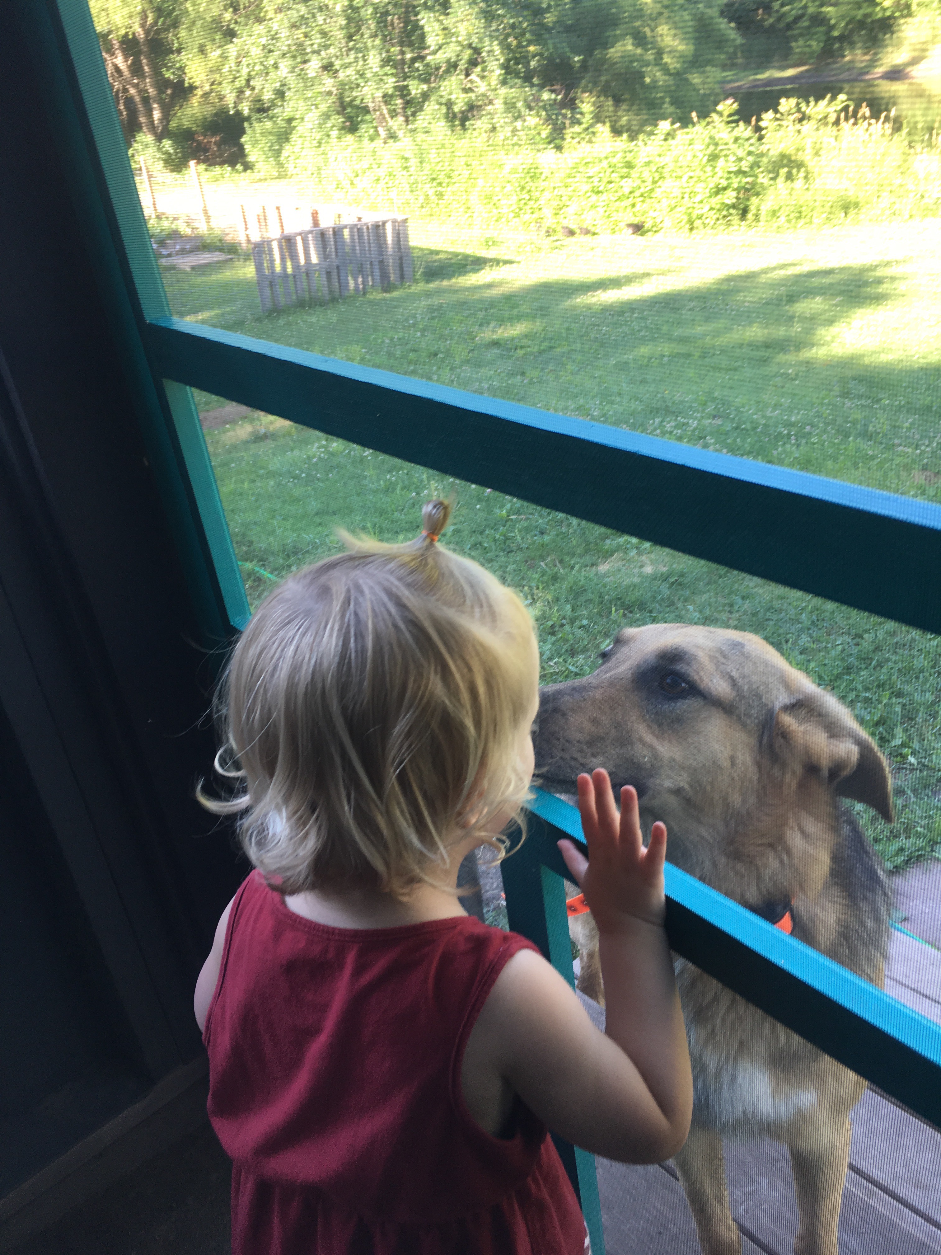 - Putting the screened doors on the back porch, complete with hardware so we could latch the doors and prevent any rolling-down-the-stairs style escapes.